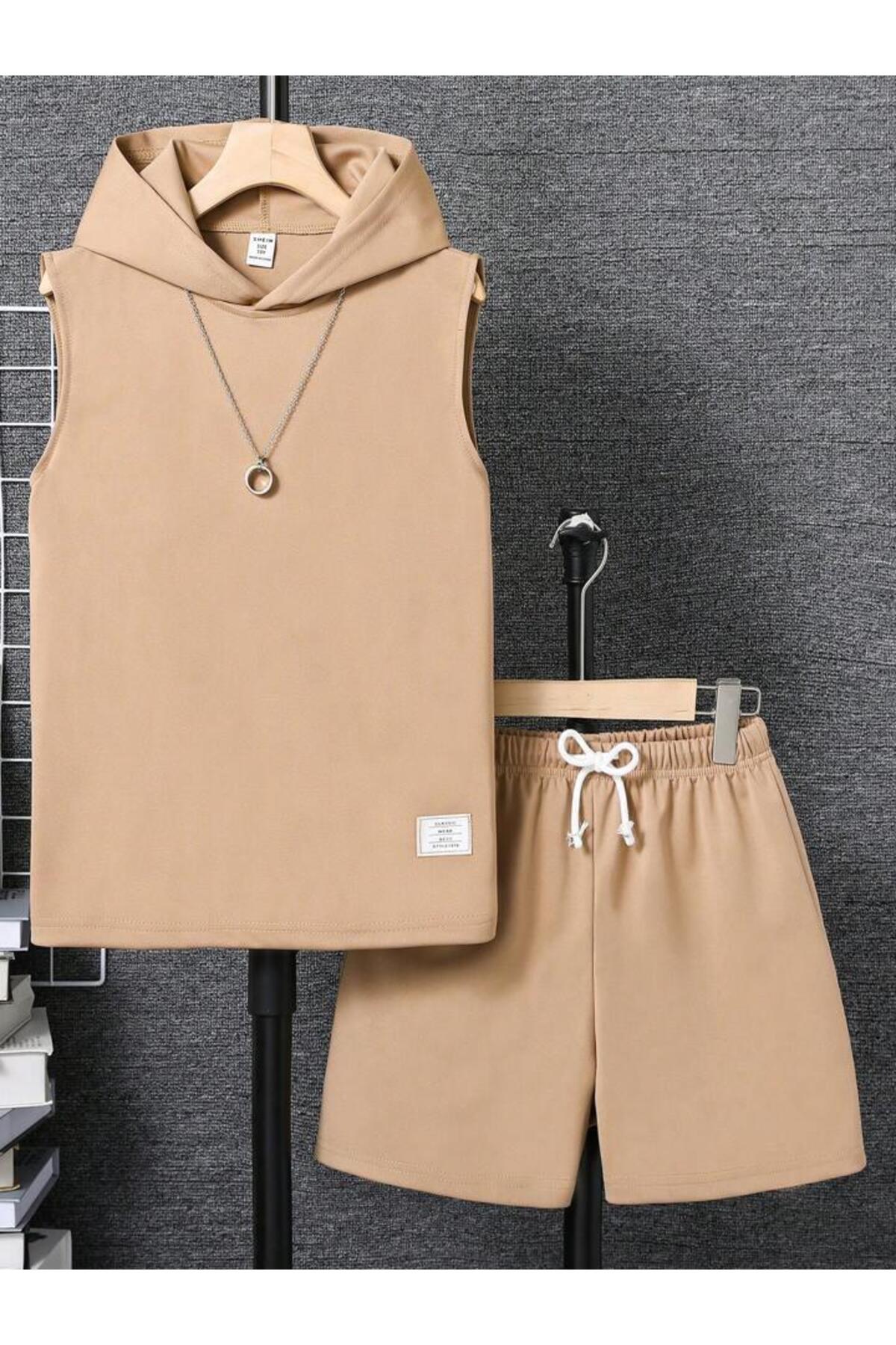 ست پایین تیشرت بالا کلاهدار بدون آستین چاپی شورت دار برند Machetta کد 1725441550