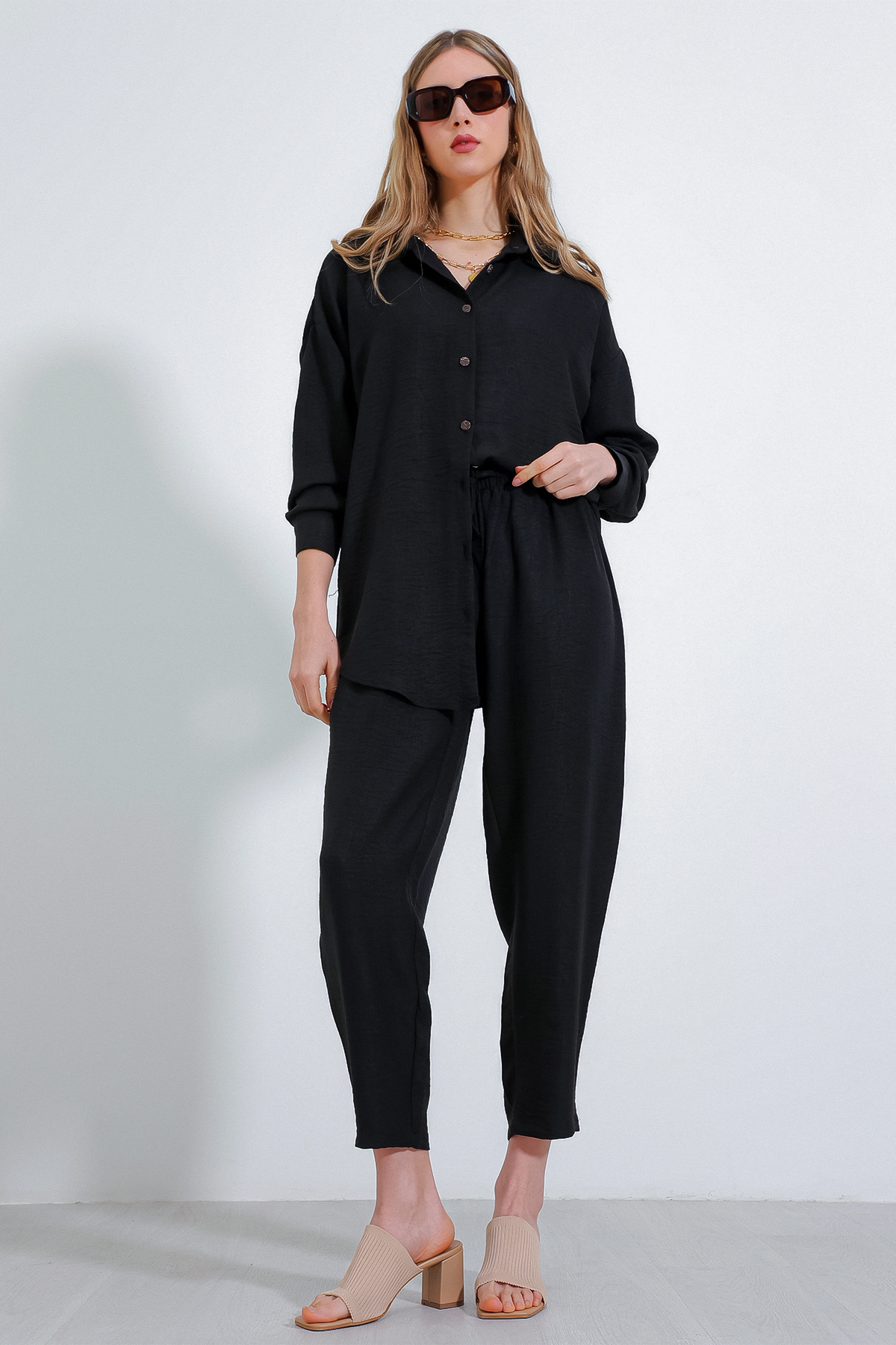 در نهایت، این ست بهترین انتخاب برای زنانی است که به دنبال یک لباس چندکاره و راحت هستند. با ست شلوبی سیاه رنگ، میتوانید در هر موقعیتی اعتماد به نفس داشته باشید و از زیبایی ظاهری خود بهرهمند شوید. بدون شک، این ست جزء ضروری کمد لباس شما خواهد بود و میتواند لحظات خاطرهانگیزی را برای شما رقم بزند.