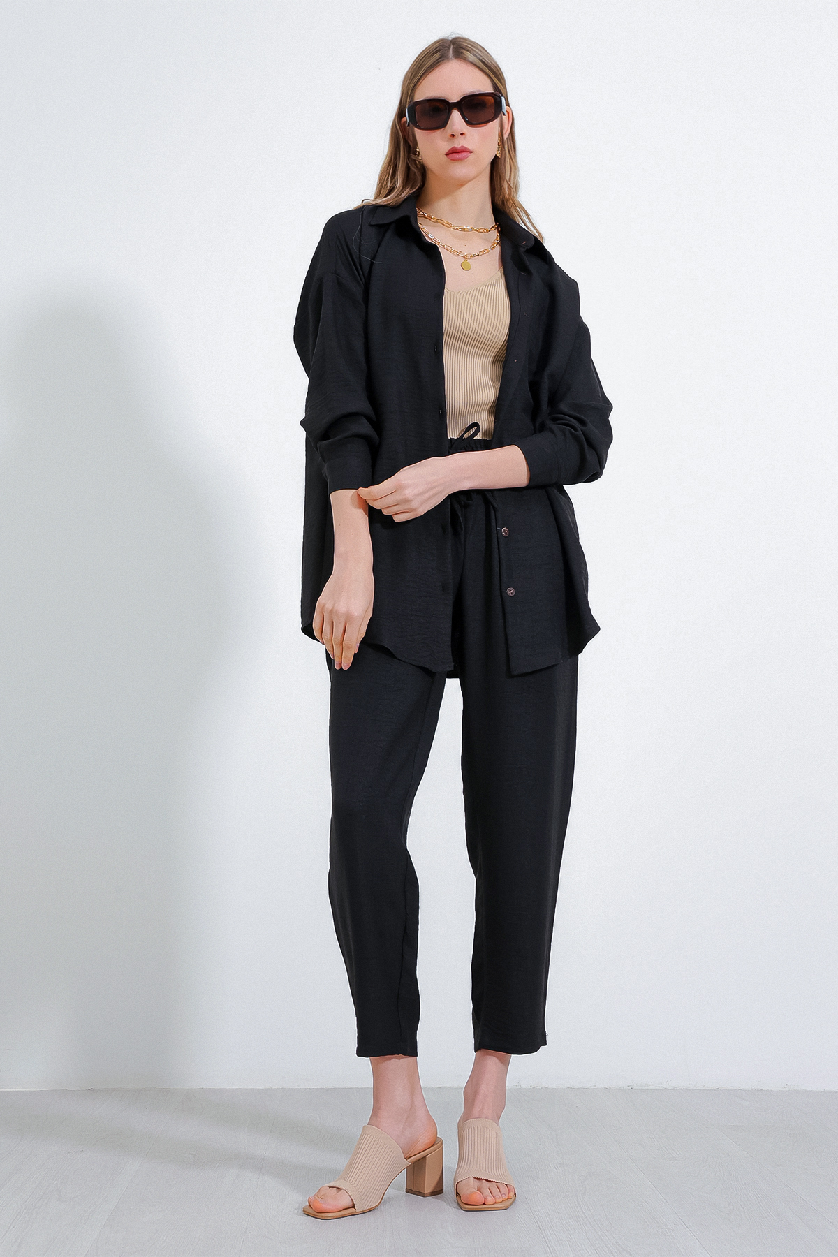 علاوه بر راحتی، طراحی مدرن و جذاب این ست نیز باید در نظر گرفته شود. برشهای جذاب و جزئیات منحصر به فرد، ست شلوبی سیاه رنگ را از سایر لباسها متمایز کرده و آن را به گزینهای عالی برای استایلهای مختلف تبدیل میکند. شما میتوانید این ست را با اکسسوریهای مختلف، از جواهرات گرفته تا کیف و کفش، ست کنید تا ظاهری منحصر به فرد و شیک داشته باشید.