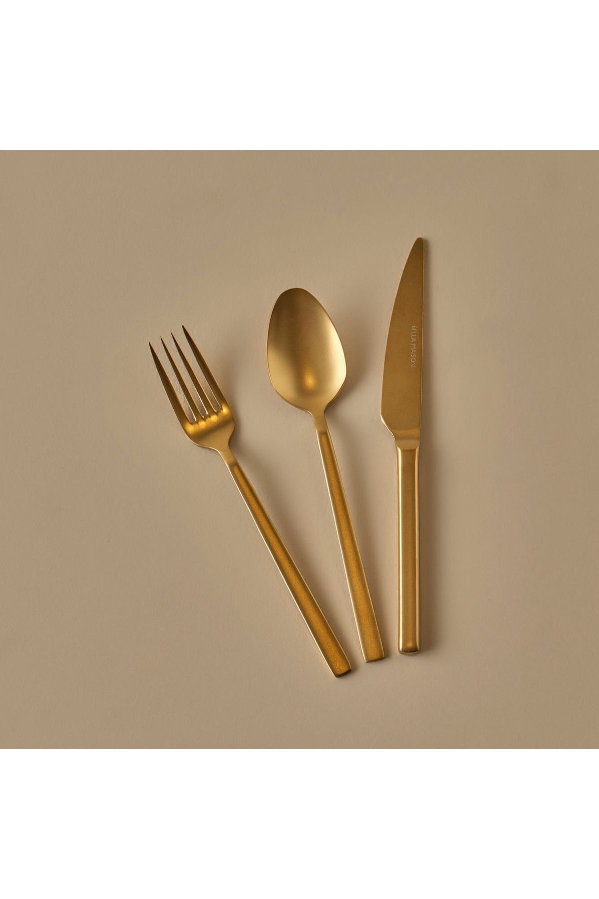 ست کارد, قاشق و چنگال شیرینی 6نفره 18تکه طلایی با کیفیت عالی و رنگ زیبا و طرح شیک و قیمت باورنکردنی ساخت برند Bella Maison را از فروشگاه اینترنتی فیزا خریداری کنید.