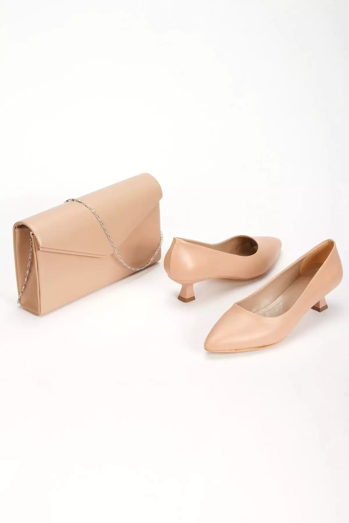 ست کیف و کفش پاشنه بلند زنانه به رنگ مستحکم پوست برند GULT
