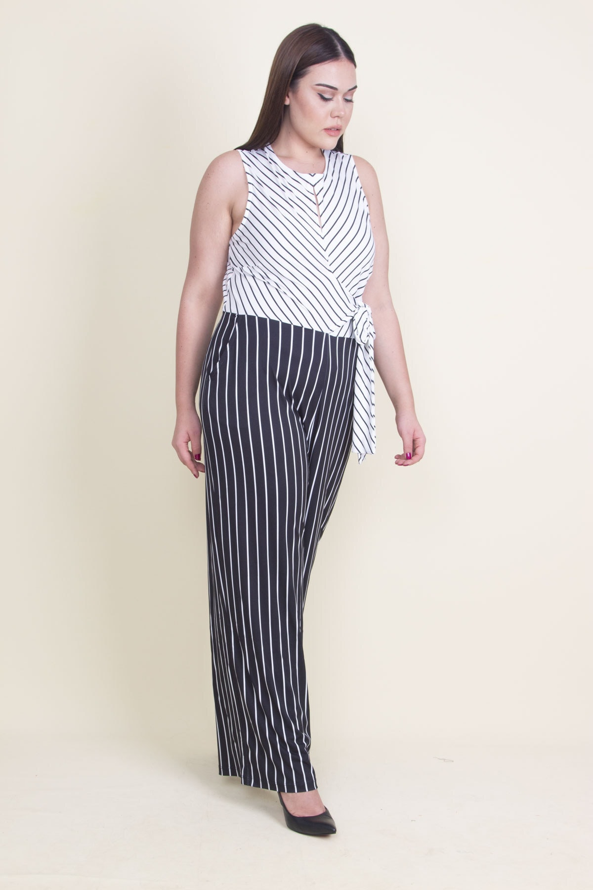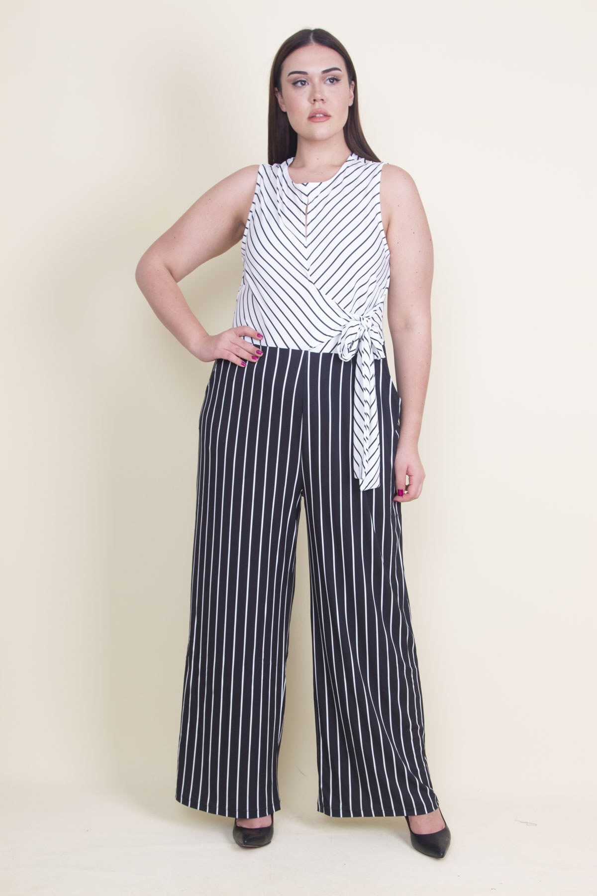یقه سیاه این سرهمی به آن جلوهای شیک و جذاب میبخشد. این طراحی ساده، امکان ست کردن با اکسسوریها و کیفهای مختلف را به کاربر میدهد و به راحتی میتوان آن را در موقعیتهای مختلف مانند مهمانیها، دورهمیها یا حتی محیطهای کاری پوشید. جزئیات کمر به طراحی این سرهمی بعدی تازه و متناسب میبخشد و موجب میشود که بدن در آن به خوبی نمایان شود.