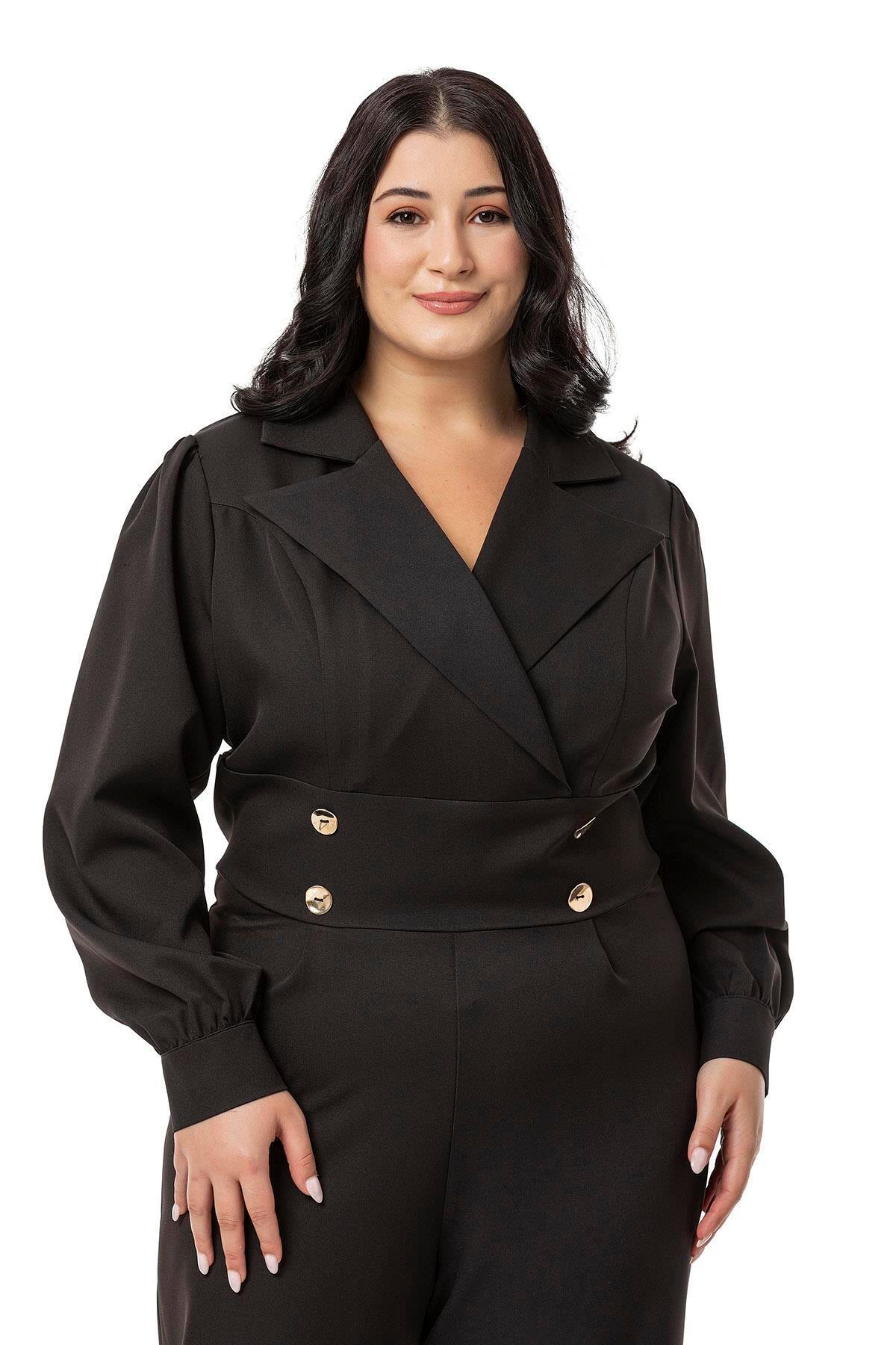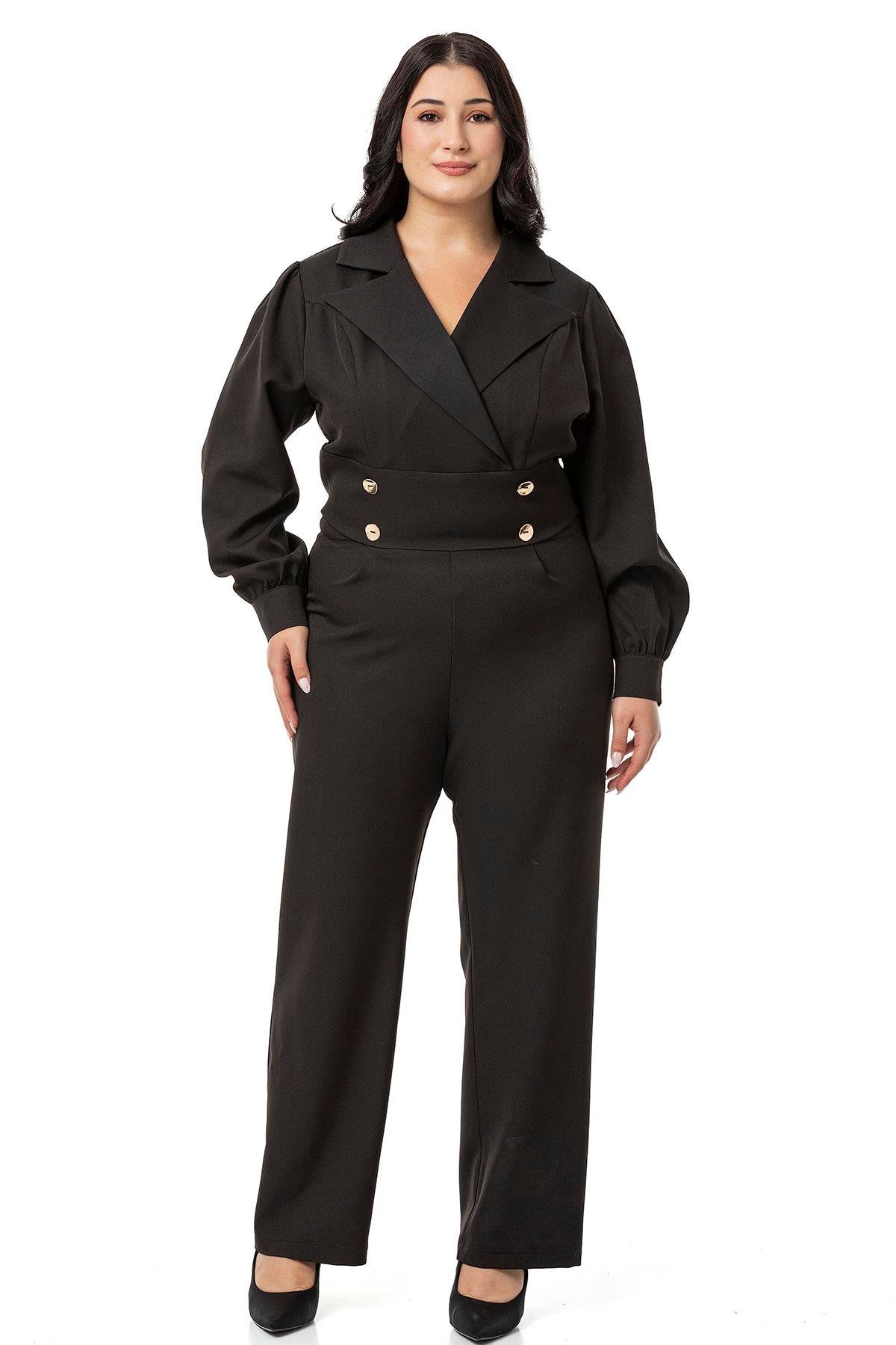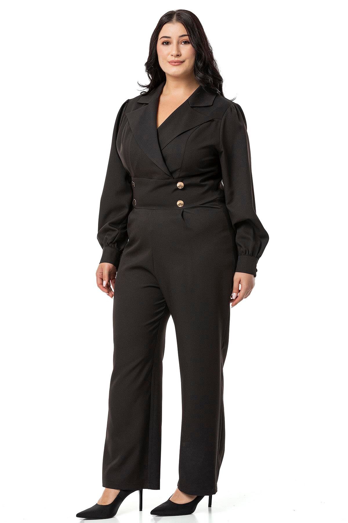 سرهمی مشکی بزرگ با یقه کروات و دکمه‌های فلزی و زیپ برند DISENTIS MODEST – 843798075