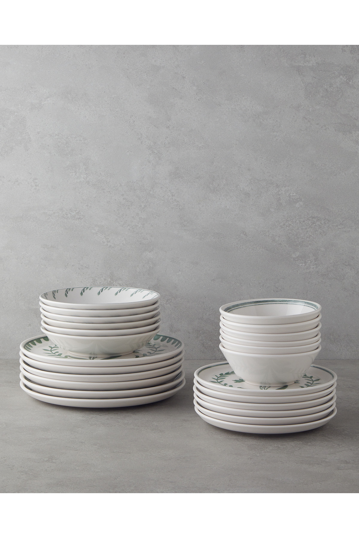 این مجموعه شامل ۲۴ پارچه است که به راحتی برای شش نفر کافی میباشد. این پارچهها شامل بشقابهای بزرگ و کوچک، کاسههای سوپ و سالاد، و همچنین ظرفهای دسر است. با این تنوع، شما میتوانید انواع مختلف غذاها را به راحتی سرو کرده و هر نوع وعده غذایی را با سلیقه بیشتری تزیین کنید. کیفیت بالای مواد استفاده شده در این سرویس، تضمینی برای دوام و ماندگاری آن است.