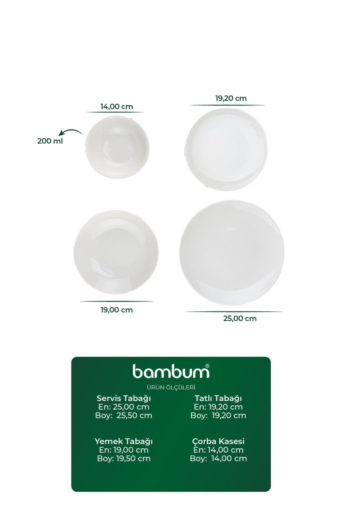 سرویس غذاخوری 6نفره 24تکه ناز سفید برند Bambum کد 1720944678