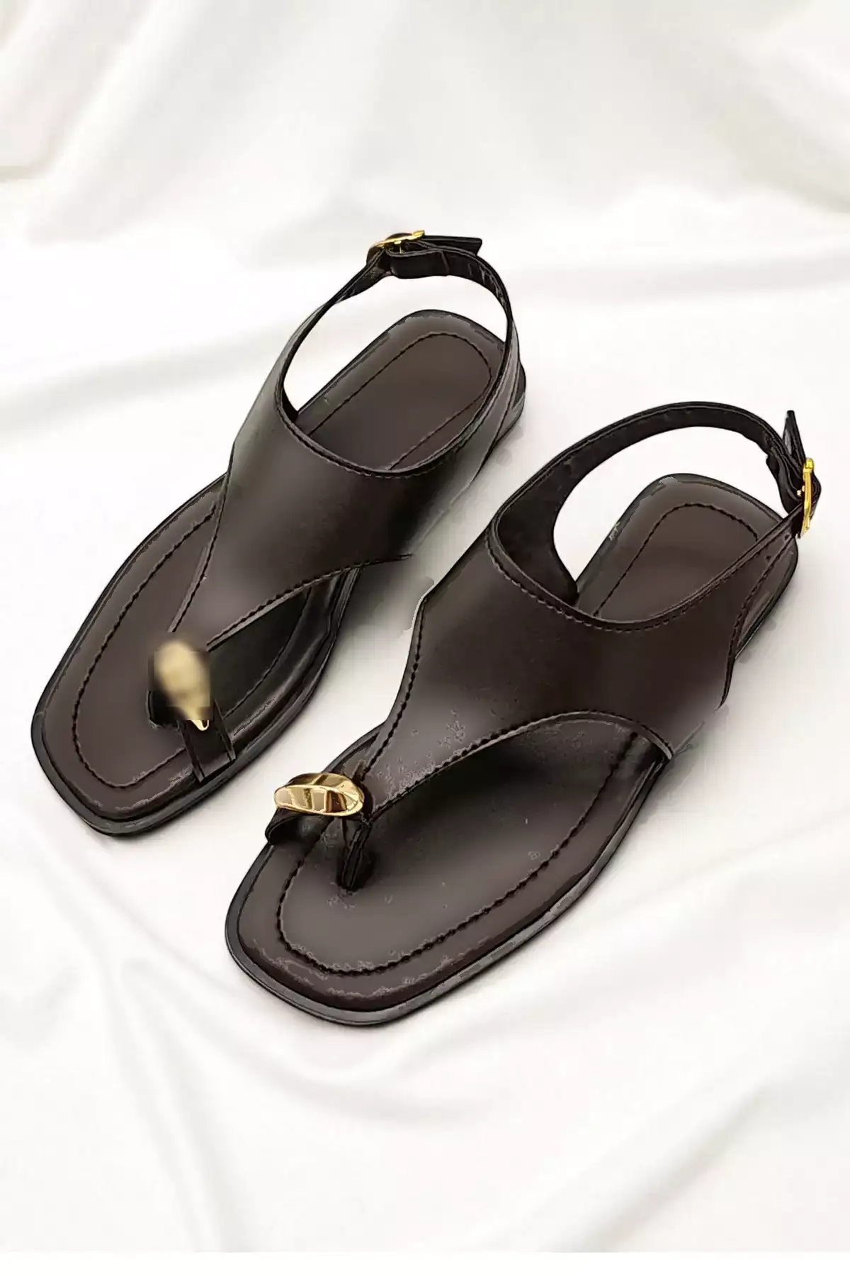 سندل روزمره زنانه ماریا با جزئیات رنگ قهوه‌ای، سیاه و طلایی برند StWenn – 960387124