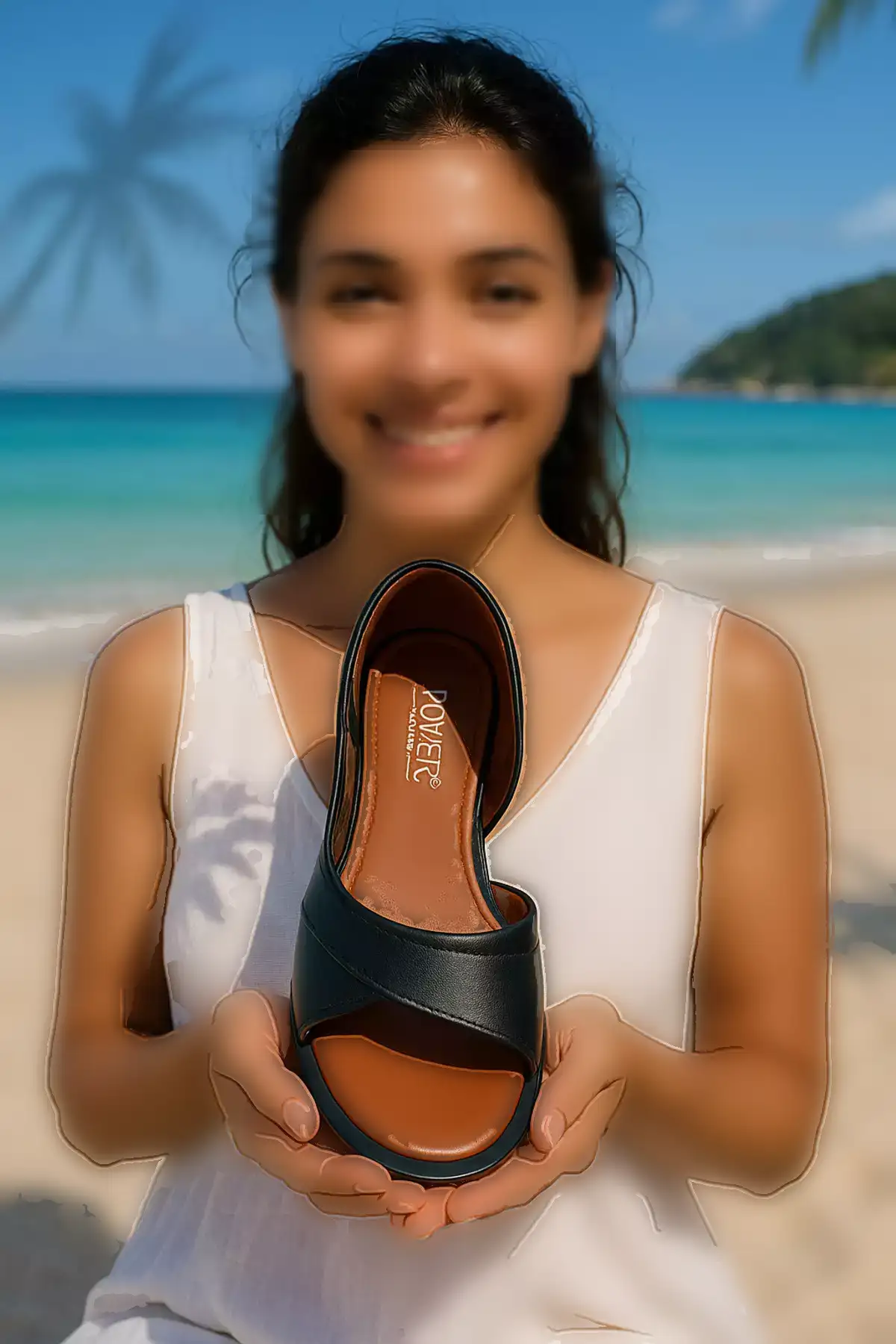 سندل روزمره شیک زنانه با بندهای ضربدری برند StWenn مناسب برای استفاده در ساحل طراحی شده است. این مدل با توجه به نیازهای روزمره خانمها ساخته شده و میتواند به راحتی با انواع لباسها ست شود.