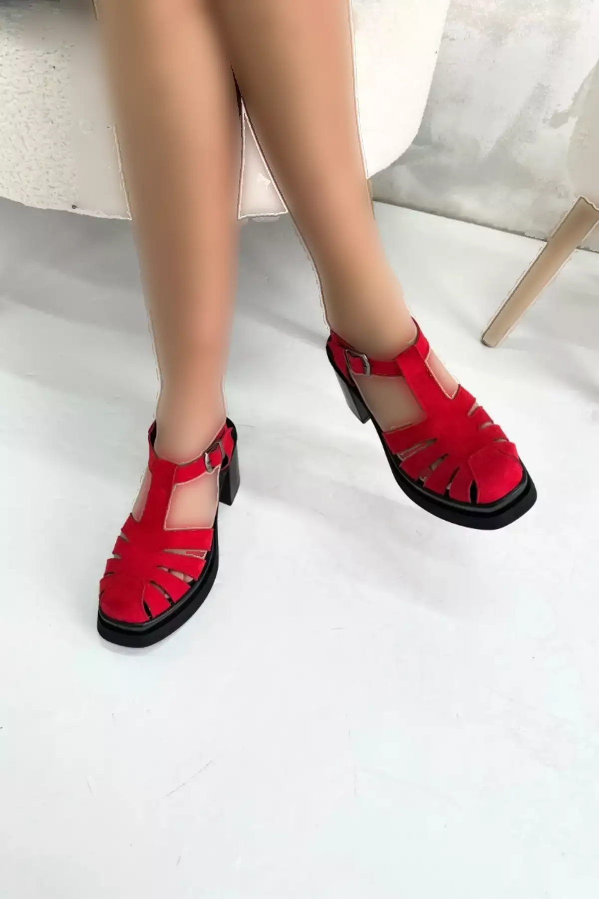 با انتخاب سندل زنانه پاشنهدار ضخیم مخملی قرمز مدل P9012، از ظاهری مدرن و خاص لذت ببرید و به راحتی در مکانهای مختلف بدرخشید.