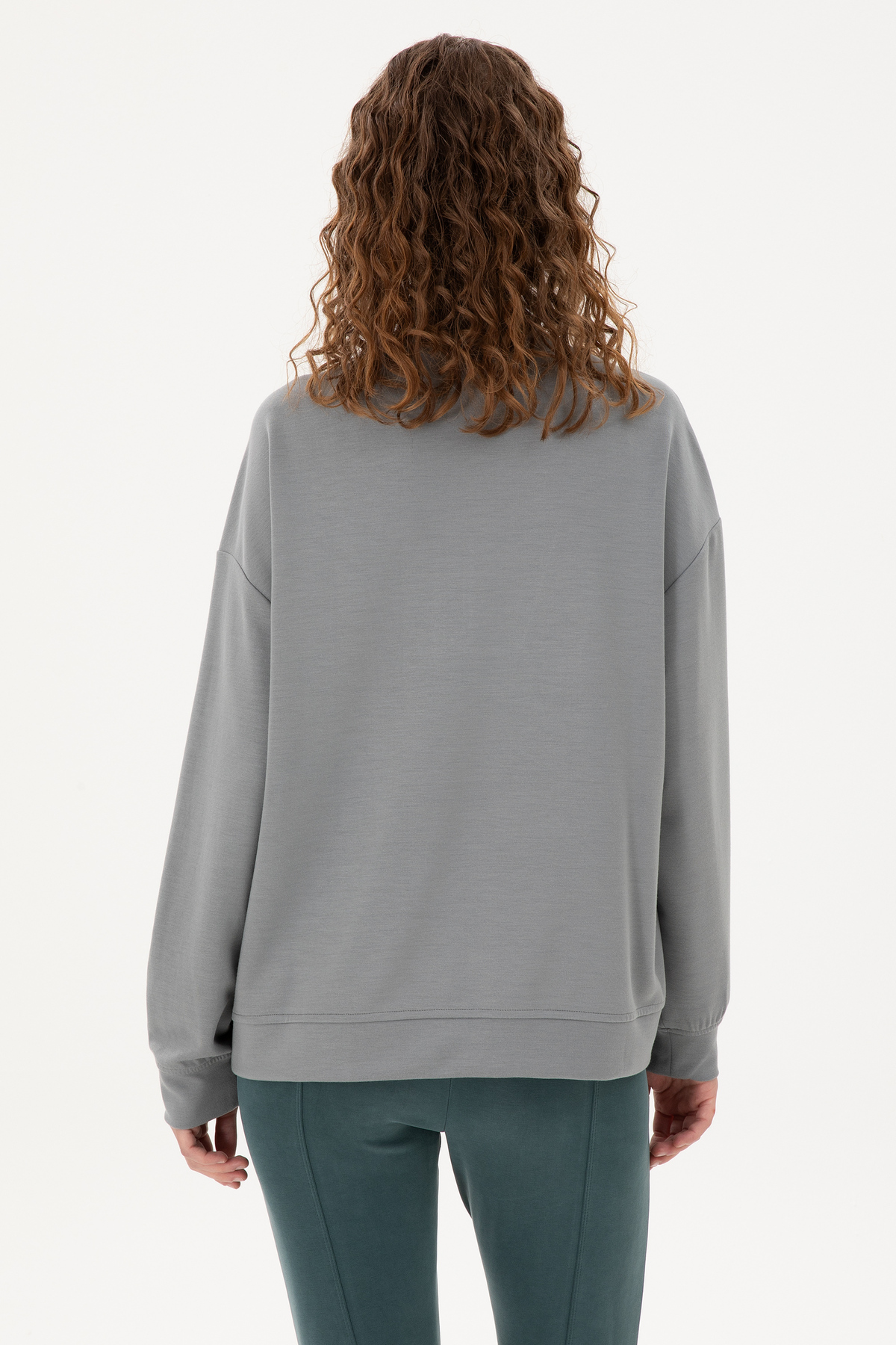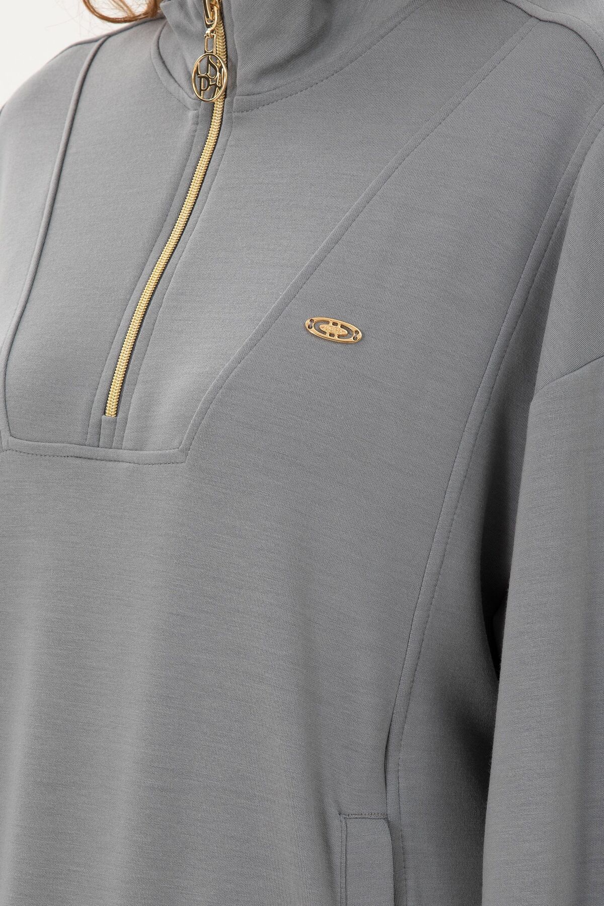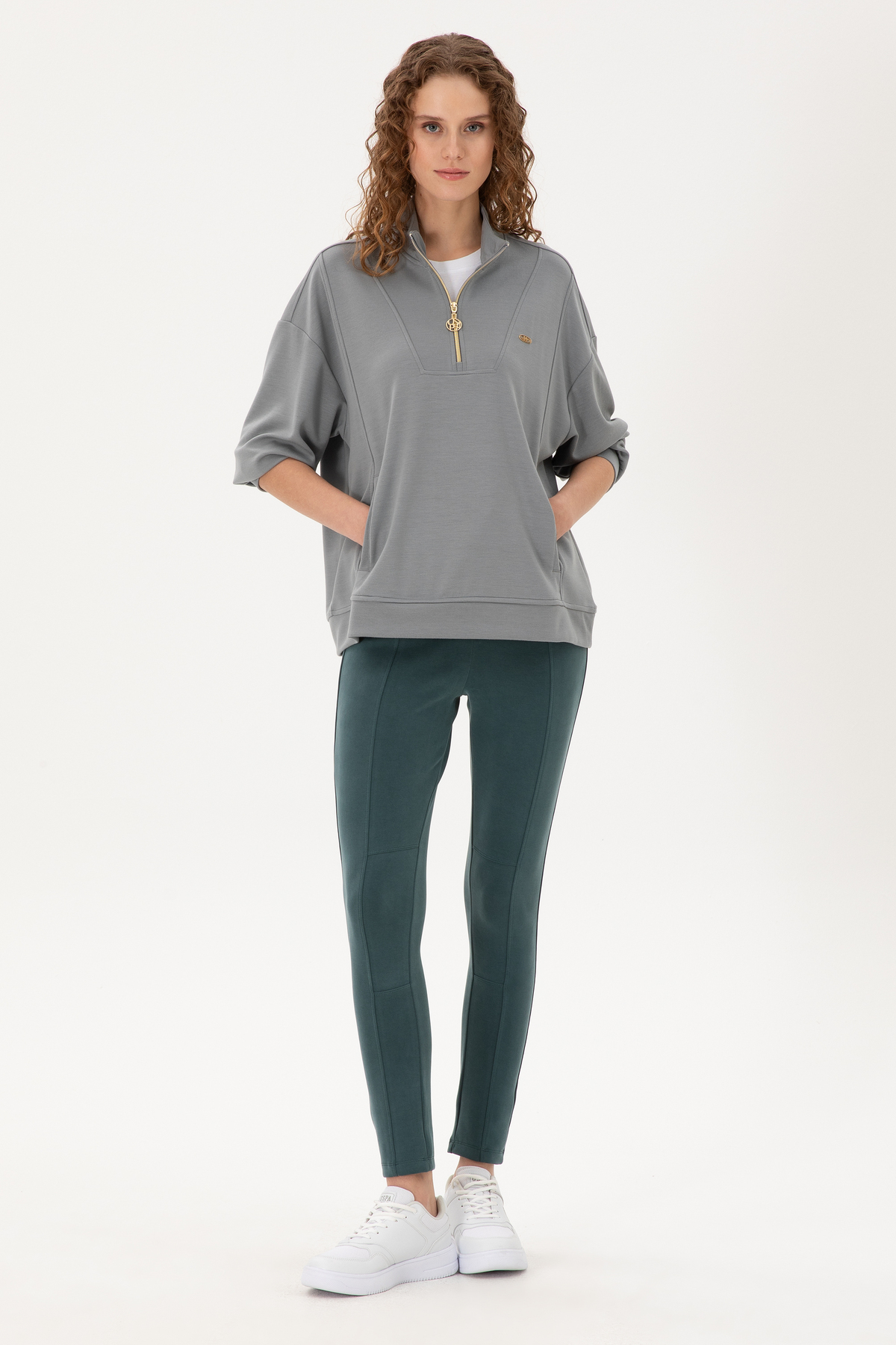 سویشرت زنانه خاکستری با ترکیب مدال و یقه ایستاده زیپ دار 50298988-VR086 برند U.S. Polo Assn.