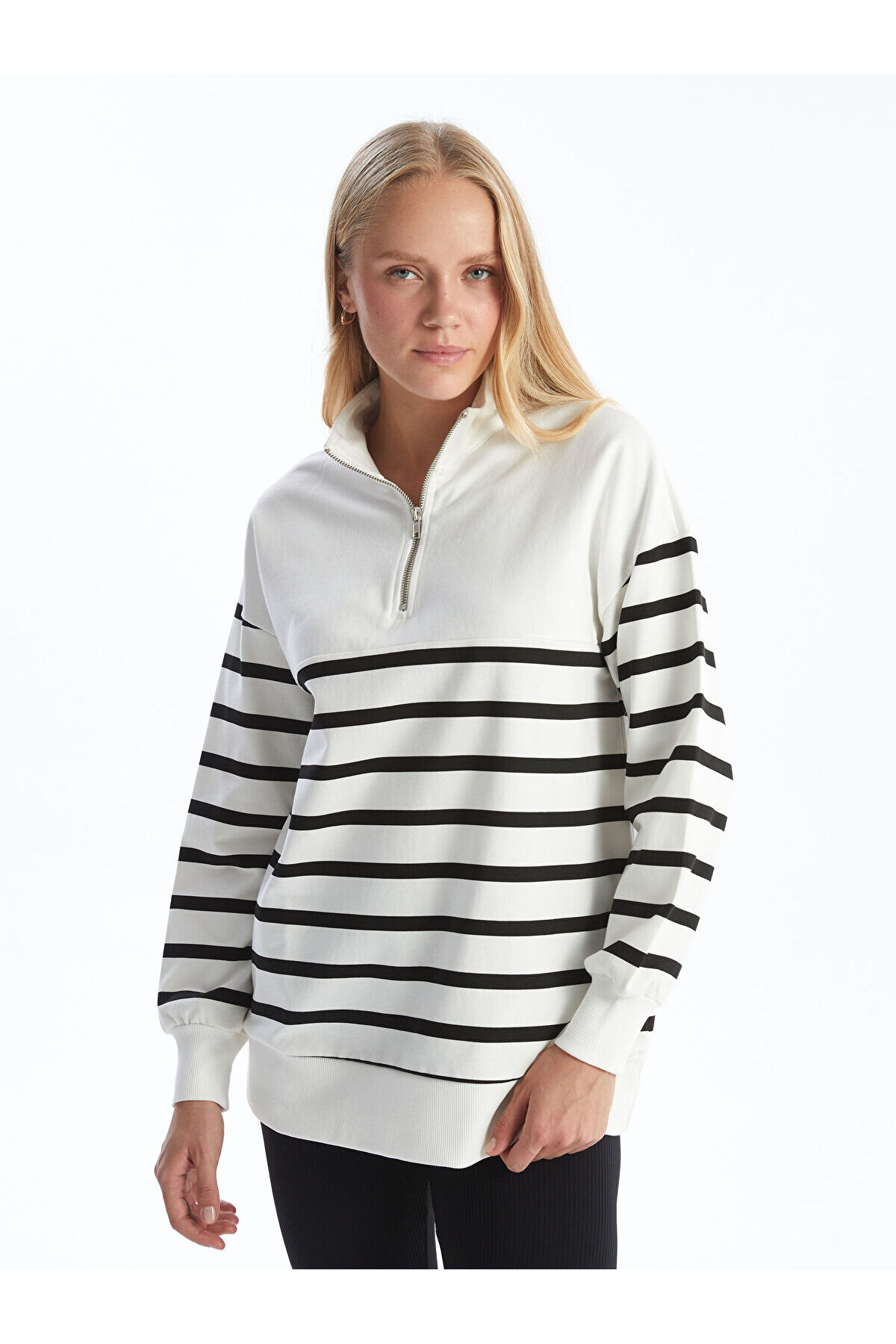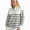 سویشرت زنانه خطدار با یقه ایستاده LCW Comfort در رنگ مشکی، محصولی است که به زیبایی و راحتی در طراحی خود توجه کرده است. این سویشرت با بهرهگیری از پارچههای با کیفیت و نرم، احساس راحتی را در تمام طول روز به شما ارائه میدهد. یقه ایستاده این سویشرت به خوبی گردن را محافظت کرده و به استایل شما زیبایی خاصی اضافه میکند. طراحی خطدار این محصول نیز به آن جلوهای مدرن و جذاب بخشیده است که میتواند به راحتی با سایر لباسهای شما هماهنگ شود.