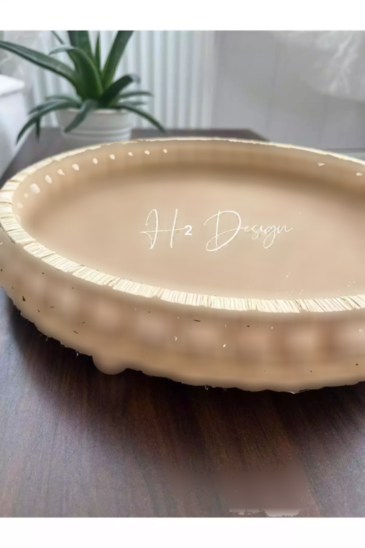 سینی تزئینی طبیعی چوب حصیری منجوقدار 29.5cm برند H2 Design کد 1757373728