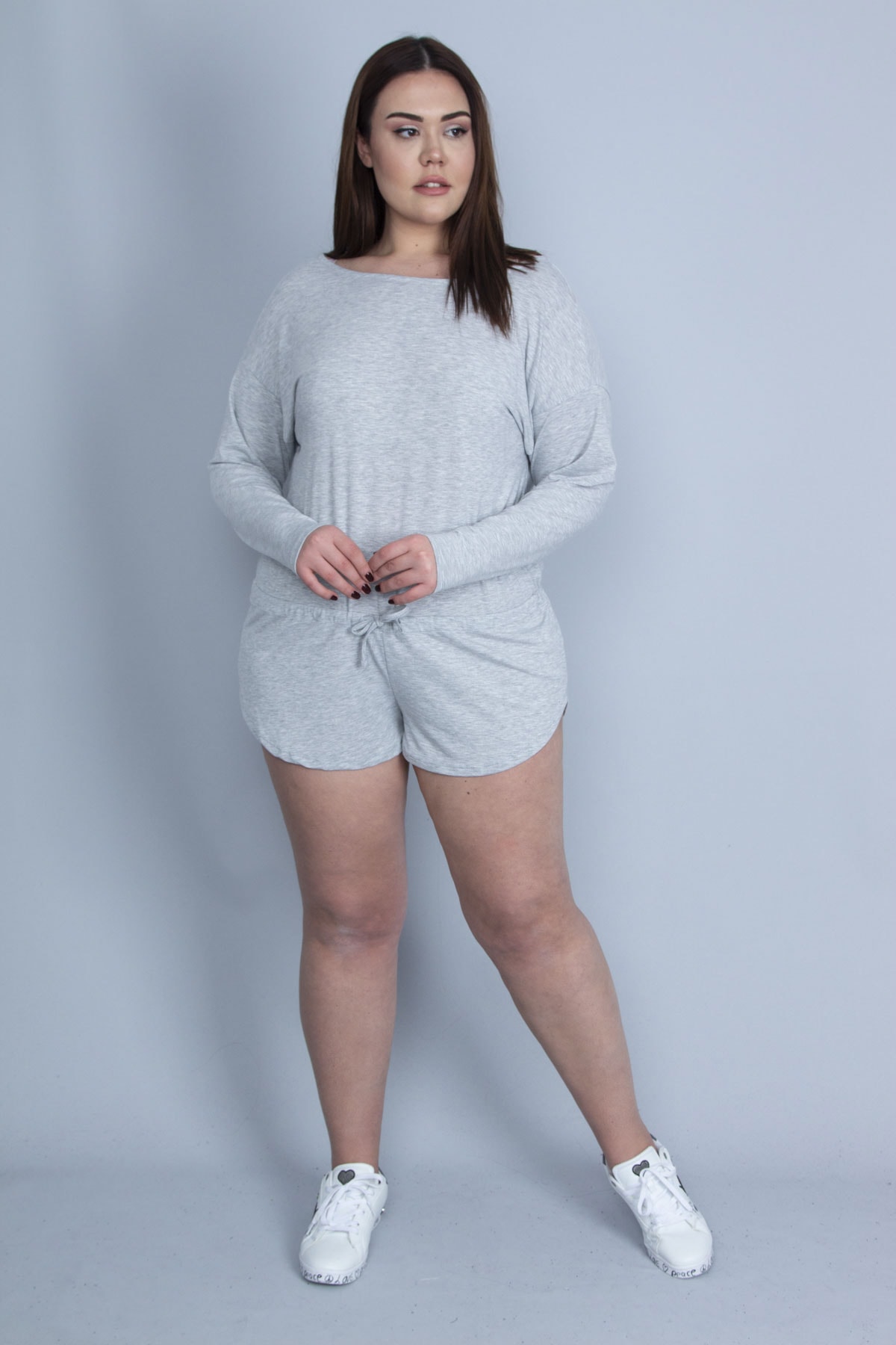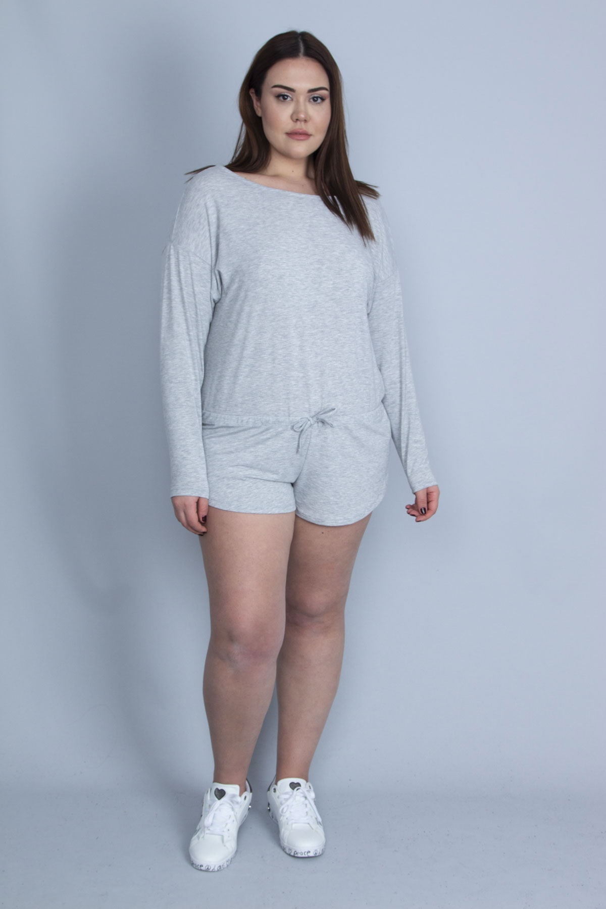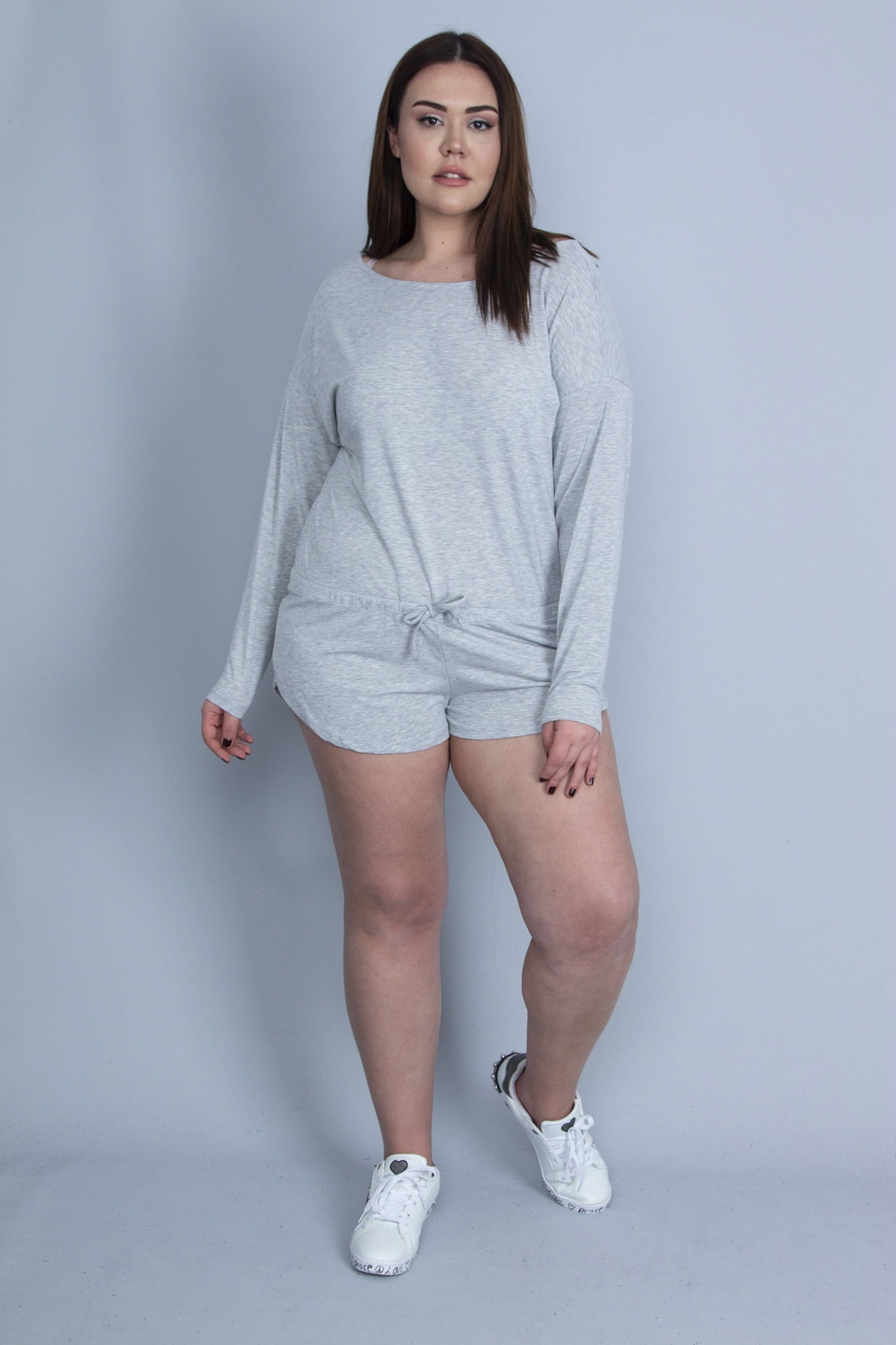 شرت شلواری گرهای با جزئیات خاکستری برای خانمهای با سایز بزرگ کد 65n25813 برند Şans