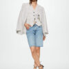 این شلوارک را میتوانید به راحتی با تیشرتهای ساده، بلوزهای نازک یا حتی تاپهای زنانه ست کنید. همینطور با اضافه کردن یک جفت کفشهای ورزشی یا صندل، به راحتی میتوانید ظاهری شیک و جذاب برای خود بسازید. شلوارک و برمودای زنانه رنگ جین متوسط به طور خاص برای کسانی که میخواهند همواره با مد روز همراه باشند طراحی شده است.