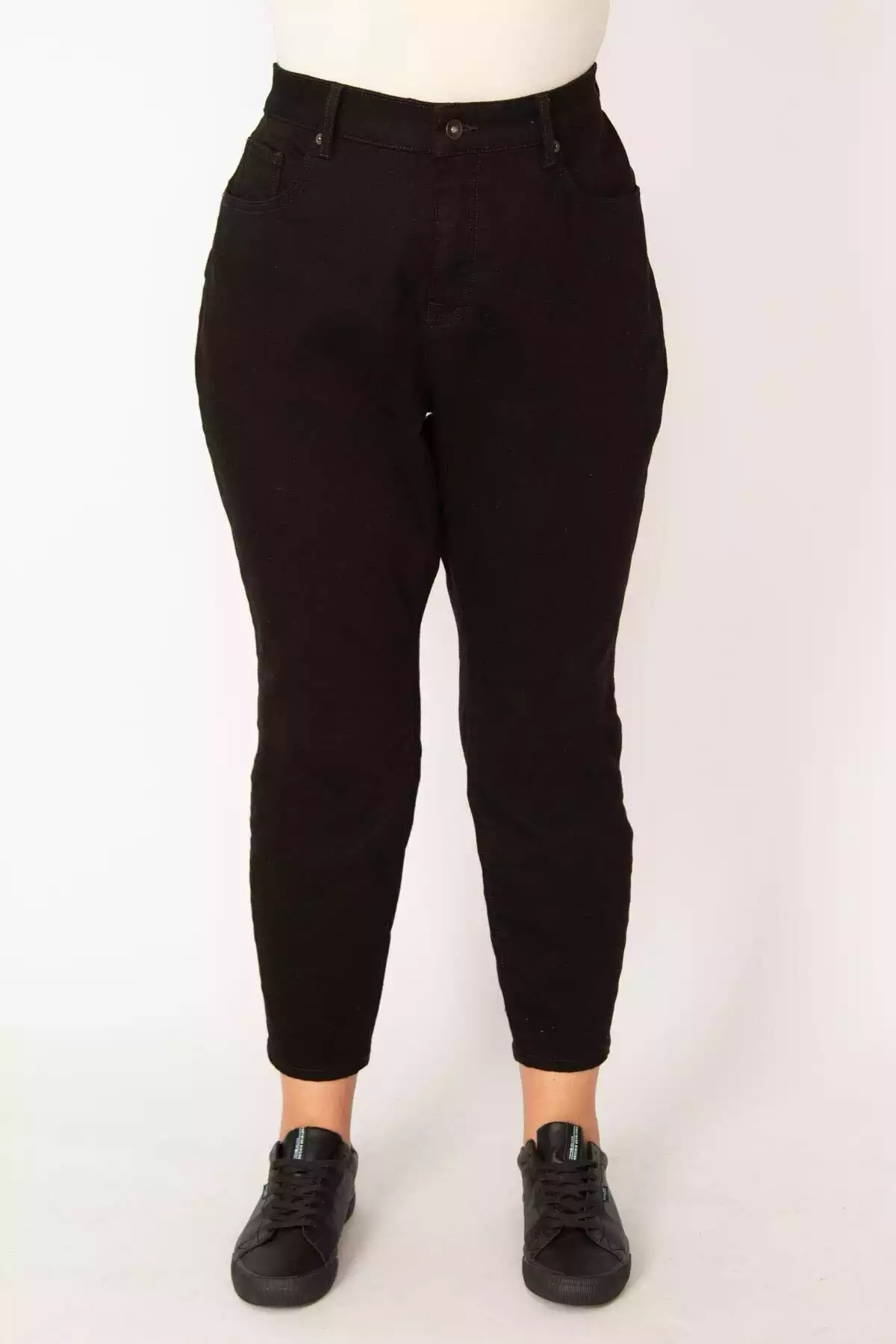 شلوار جین مشکی زنانه با کمر بلند و ۵ جیب، سایز بزرگ. کد 1757947268