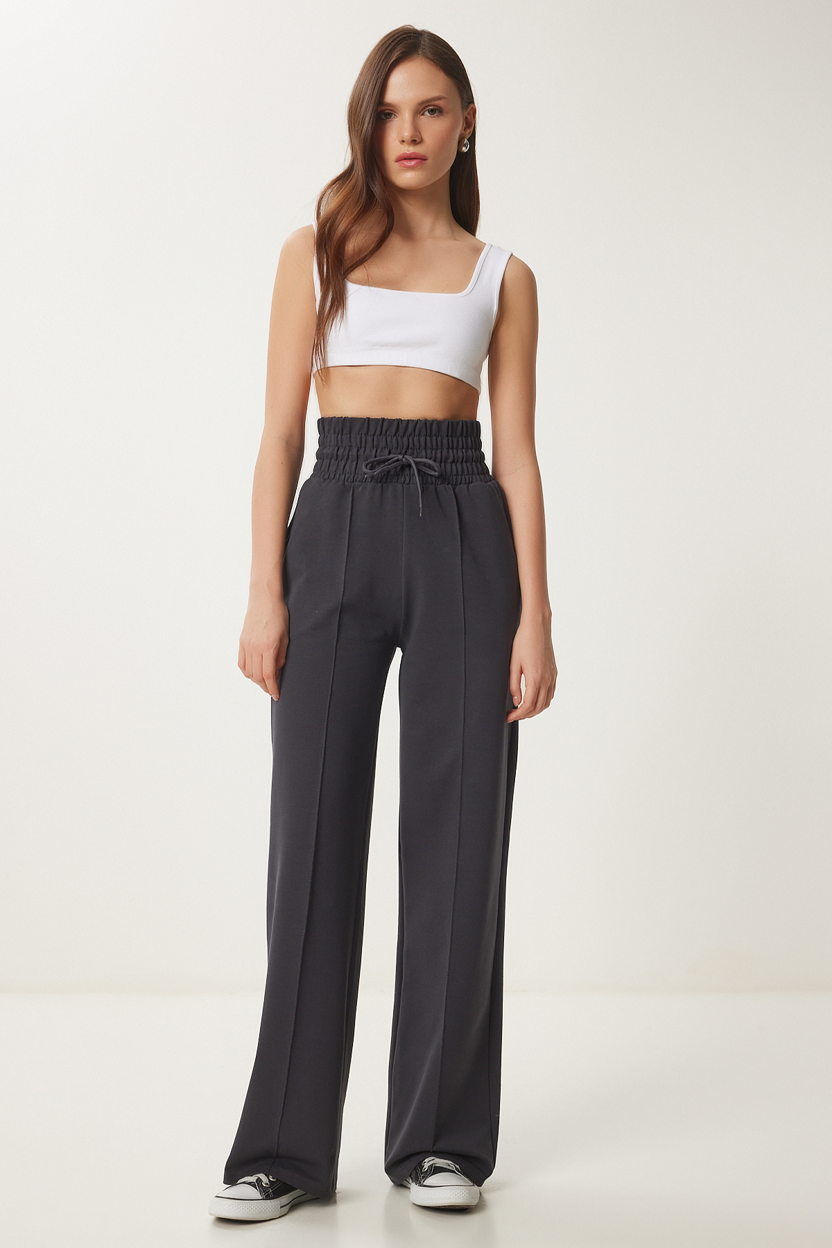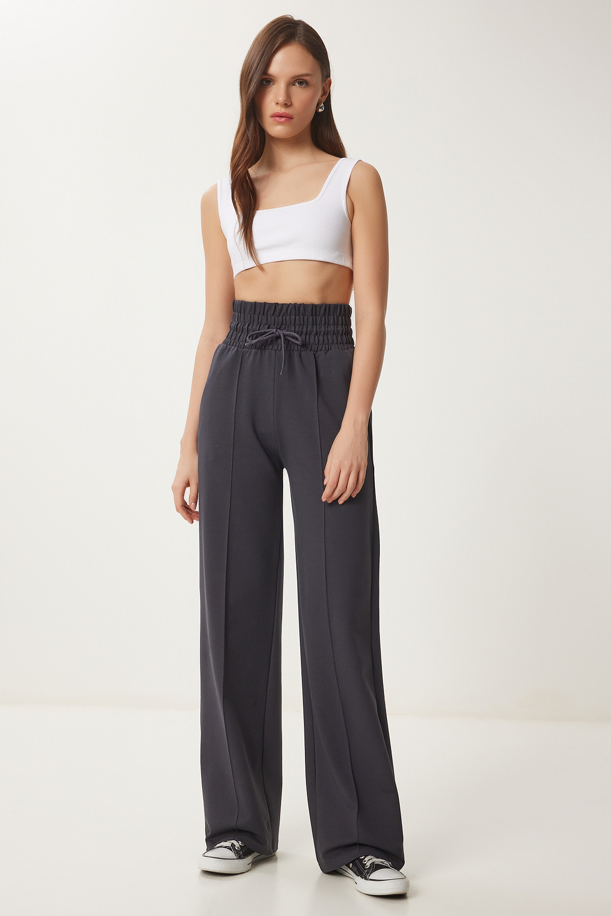 شلوار راحتی بافتنی جیب دار ساده دودی زنانه با کیفیت عالی و رنگ زیبا و طرح شیک و قیمت باورنکردنی ساخت برند Happiness İstanbul را از فروشگاه اینترنتی فیزا خریداری کنید.