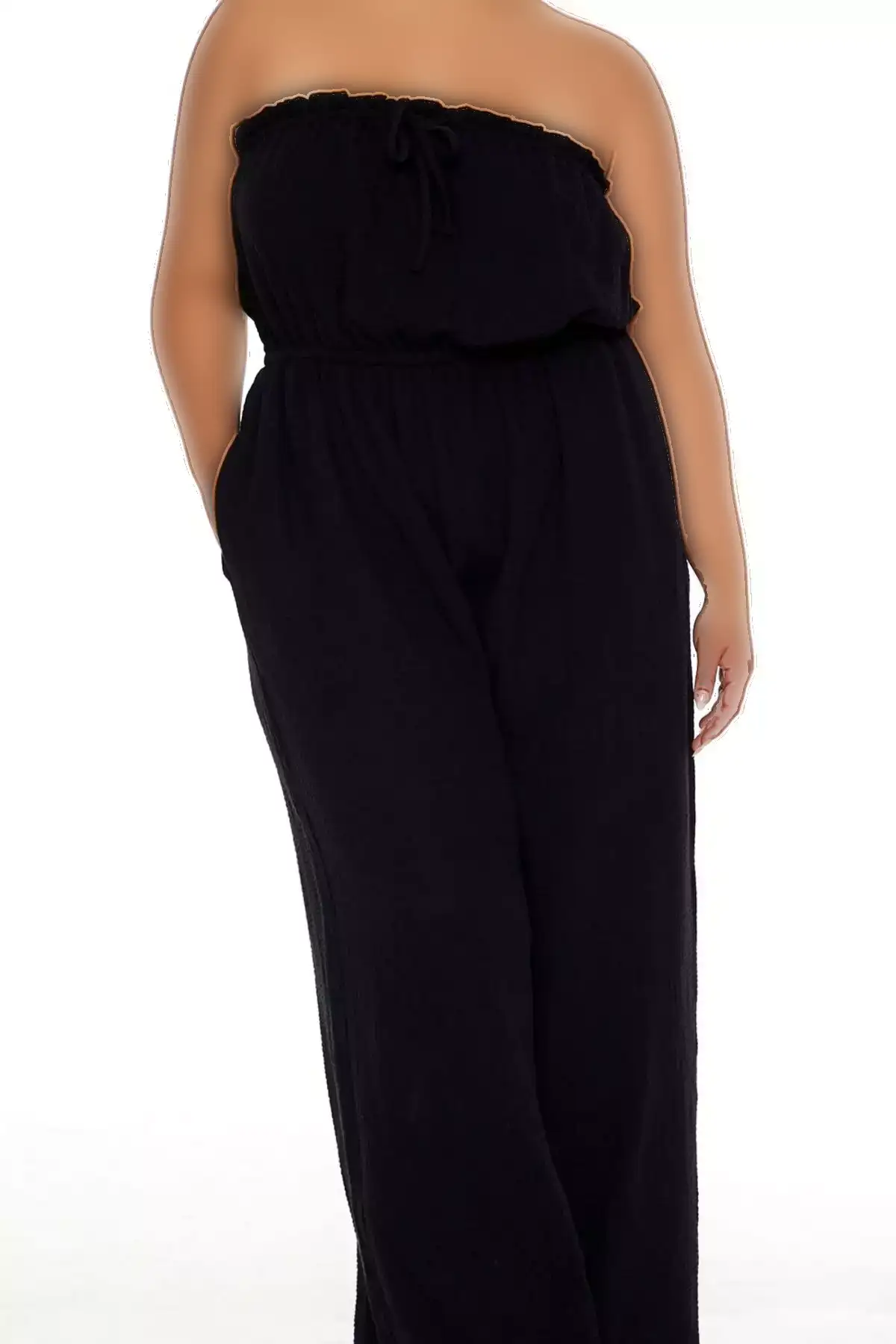تولم دکمهدار یقه V با کمربند قابل جدا شدن، شلوار گشاد بزرگ سایز – رنگ مشکی برند LUOKK – 859244249