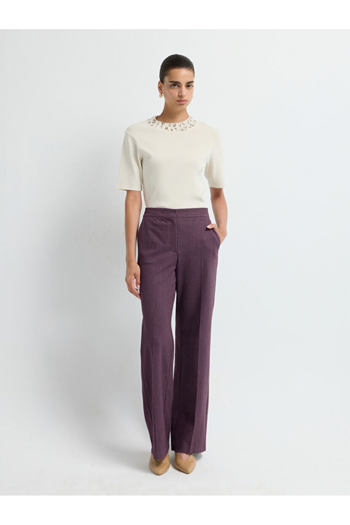 رنگ بنفش جذاب این شلوار به راحتی با دیگر لباسها و اکسسوریها ست میشود و ظاهری شیک و مدرن به شما میبخشد.