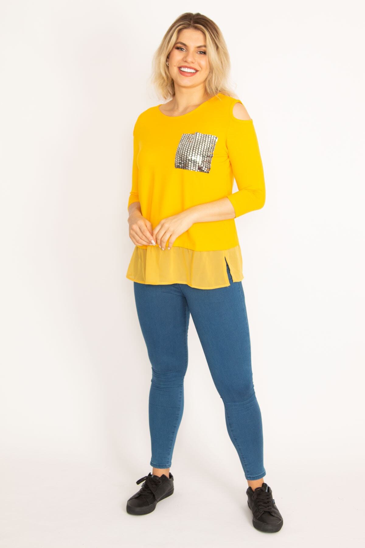 به طور کلی، دامن شفاف زرد با جزئیات سنگی و طراحی یقه کافتی یک گزینه مدرن و شیک برای بانوان سایز بزرگ است. این دامن هم مناسب روزمره و هم برای مهمانیهای خاص است و به شما این امکان را میدهد که با اعتماد به نفس در هر جمعی حاضر شوید. این محصول را میتوانید به راحتی با اکسسوریها و کفشهای مختلف ست کنید و استایل منحصر به فرد خود را به نمایش بگذارید.