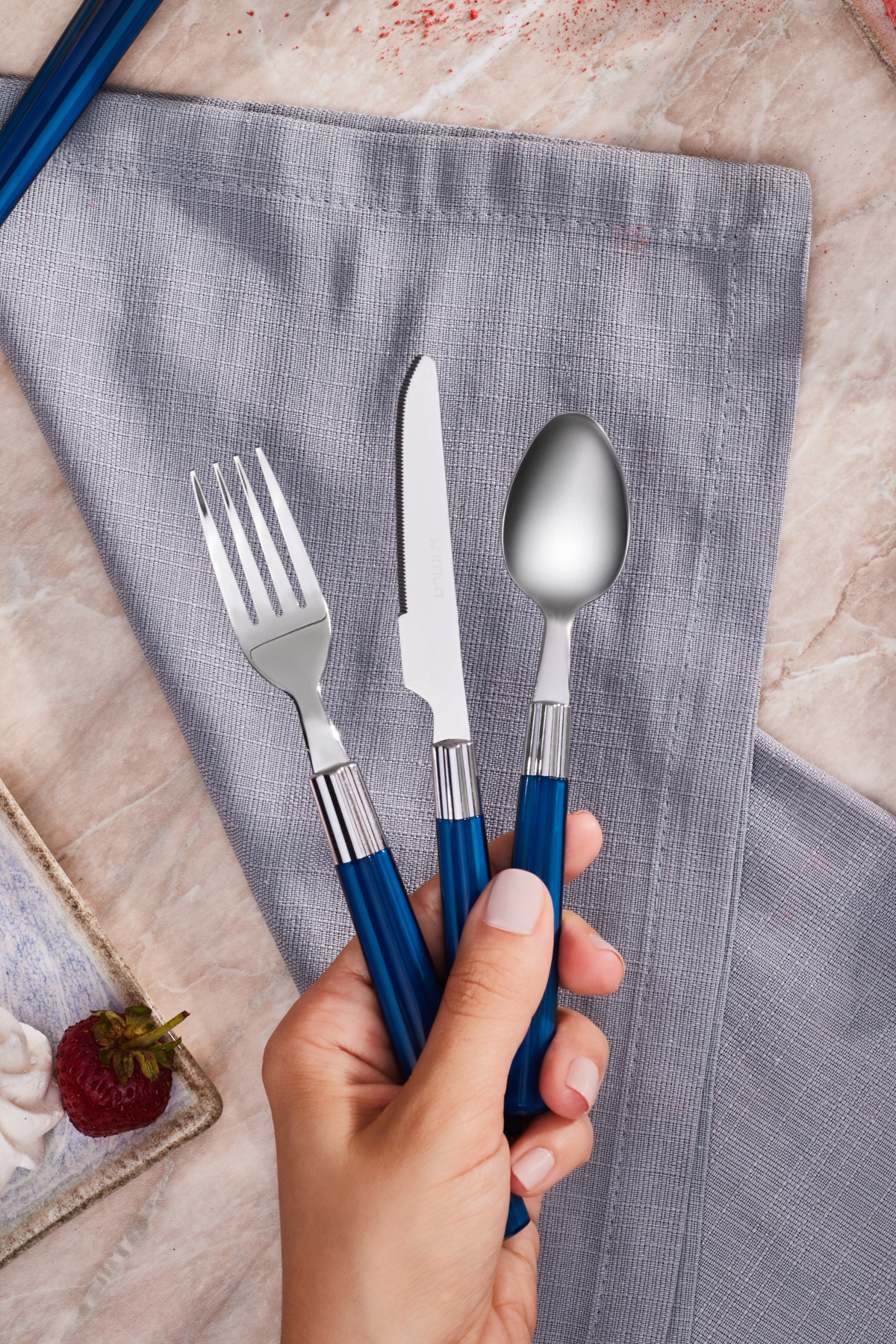 صبحانه ست کارد, قاشق و چنگال 6نفره 18تکه آبی فلوکا با کیفیت عالی و رنگ زیبا و طرح شیک و قیمت باورنکردنی ساخت برند Karaca را از فروشگاه اینترنتی فیزا خریداری کنید.