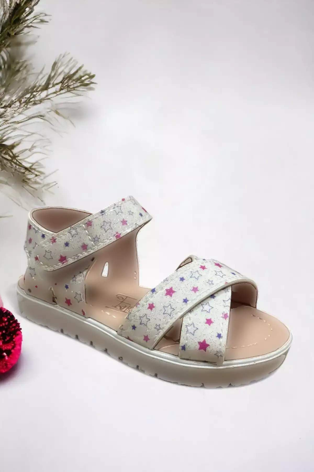 صندل دخترانه با طراحی الگوی ستاره سفید و بند چسبی برند Ponchiq