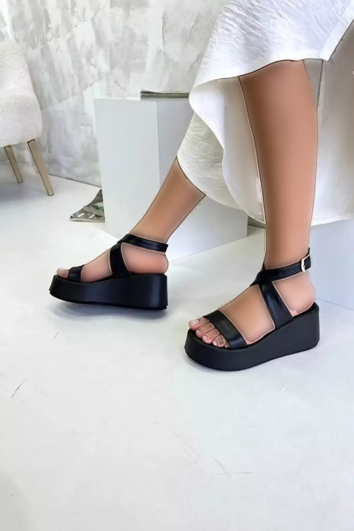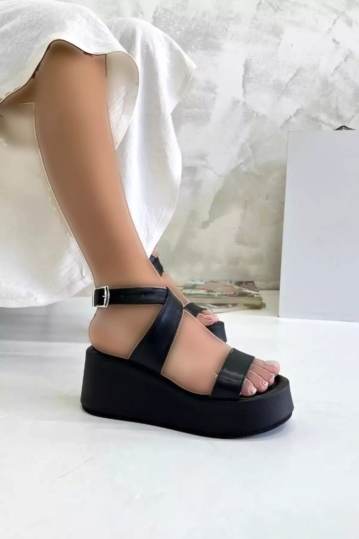 صندل زنانه پاشنه دار با کفی مشکی مدل V4222 برند inizio - 942293282