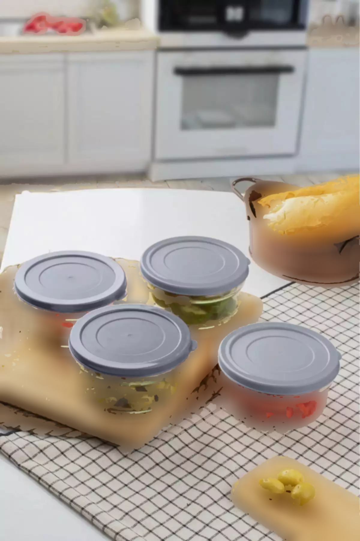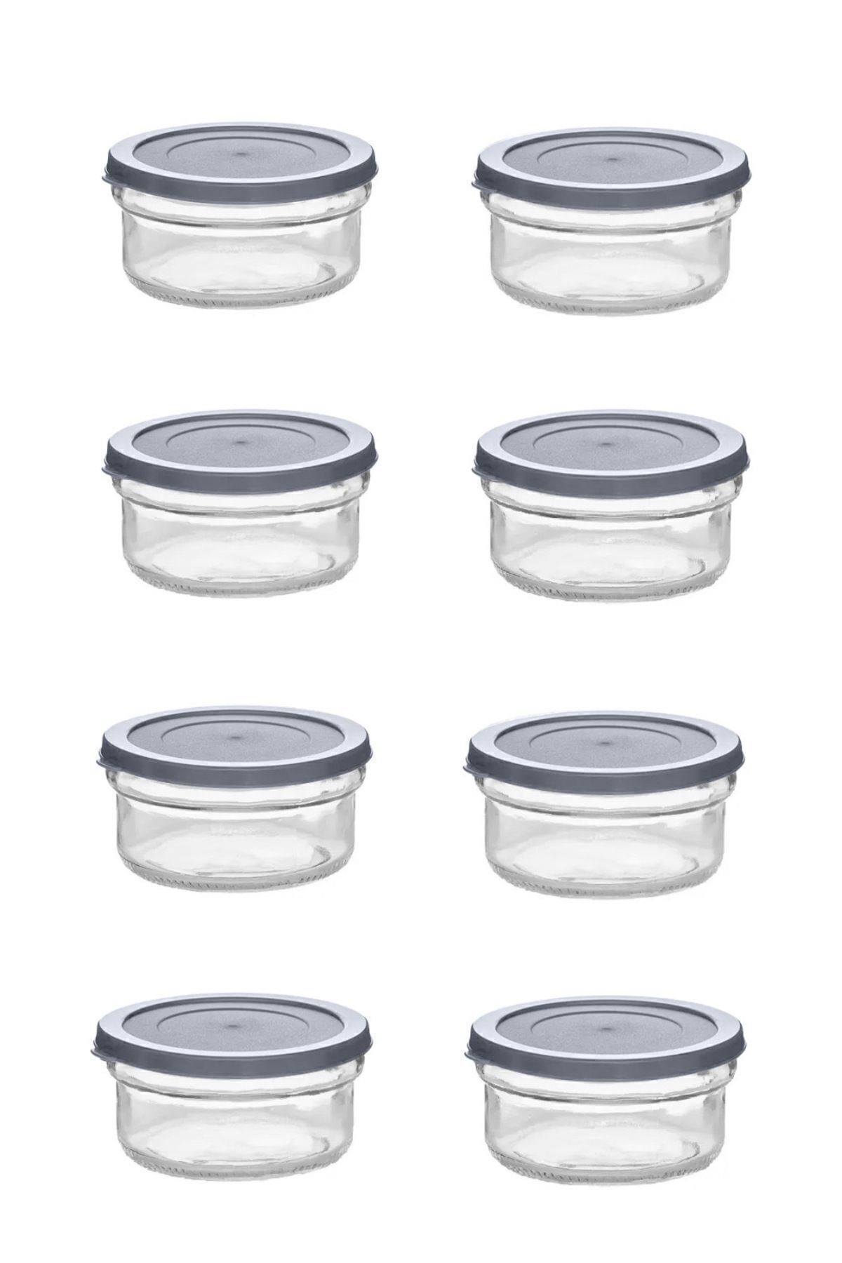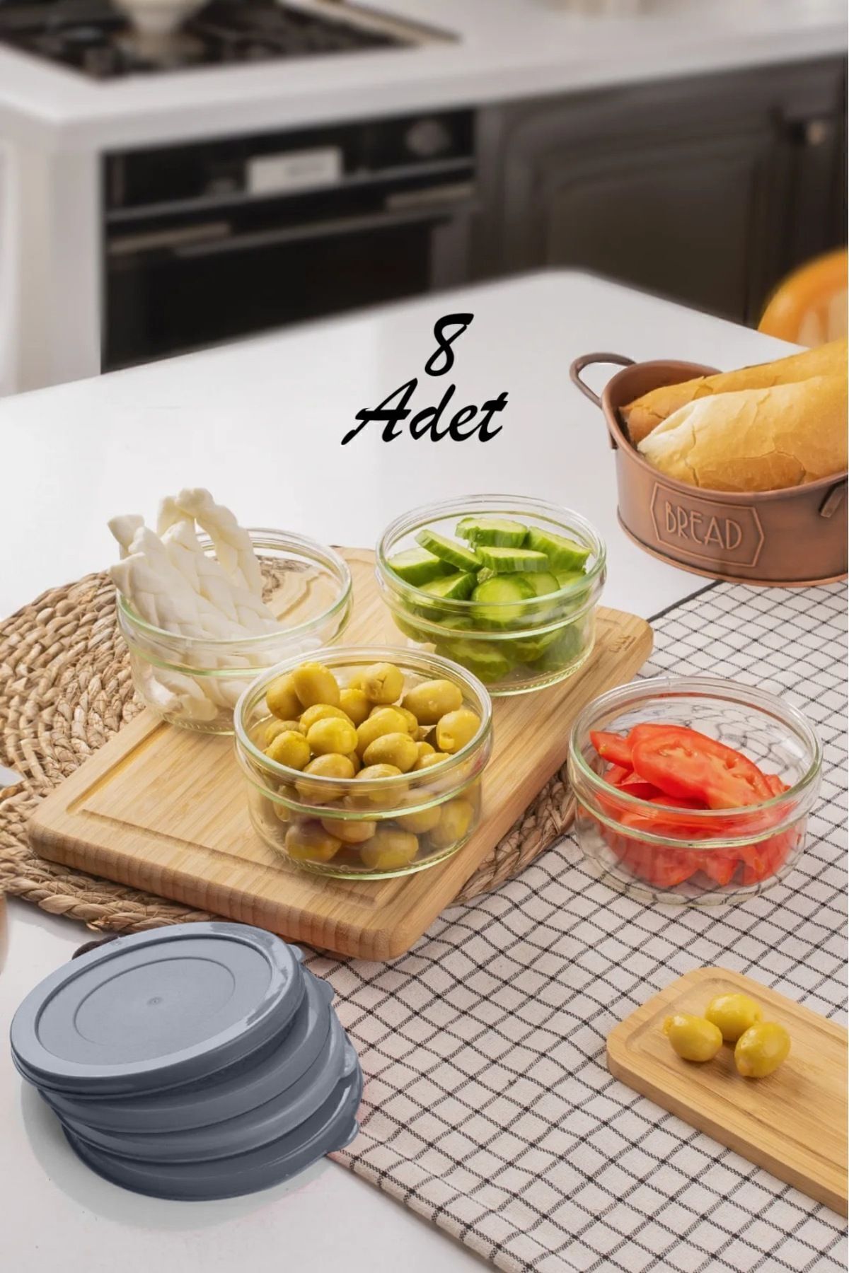 کاسه شیشه‌ای با درب خاکستری برای نگهداری، ۴۰۰ سی‌سی، شامل ۸ نوع صبحانه کد 1757662807