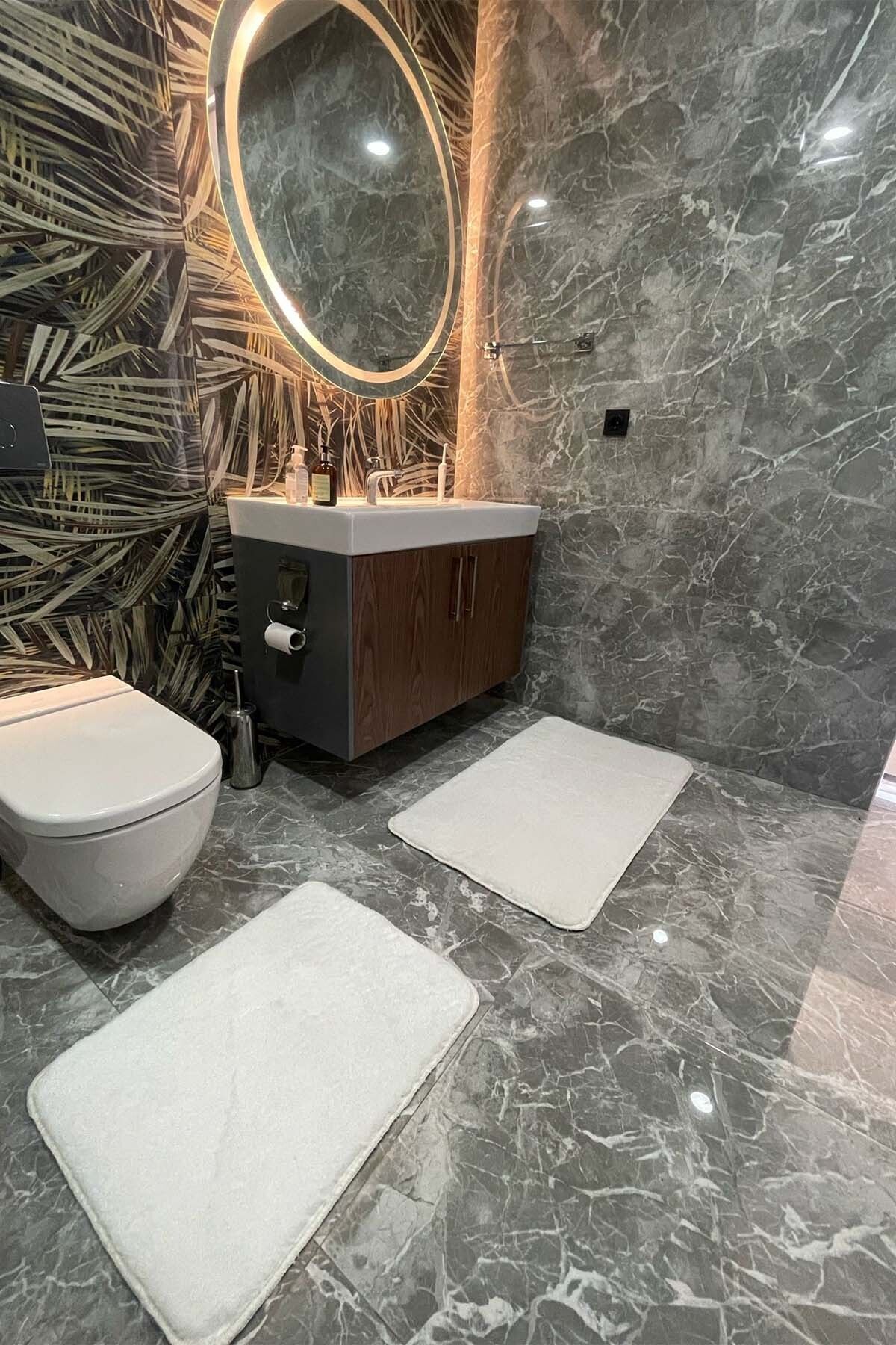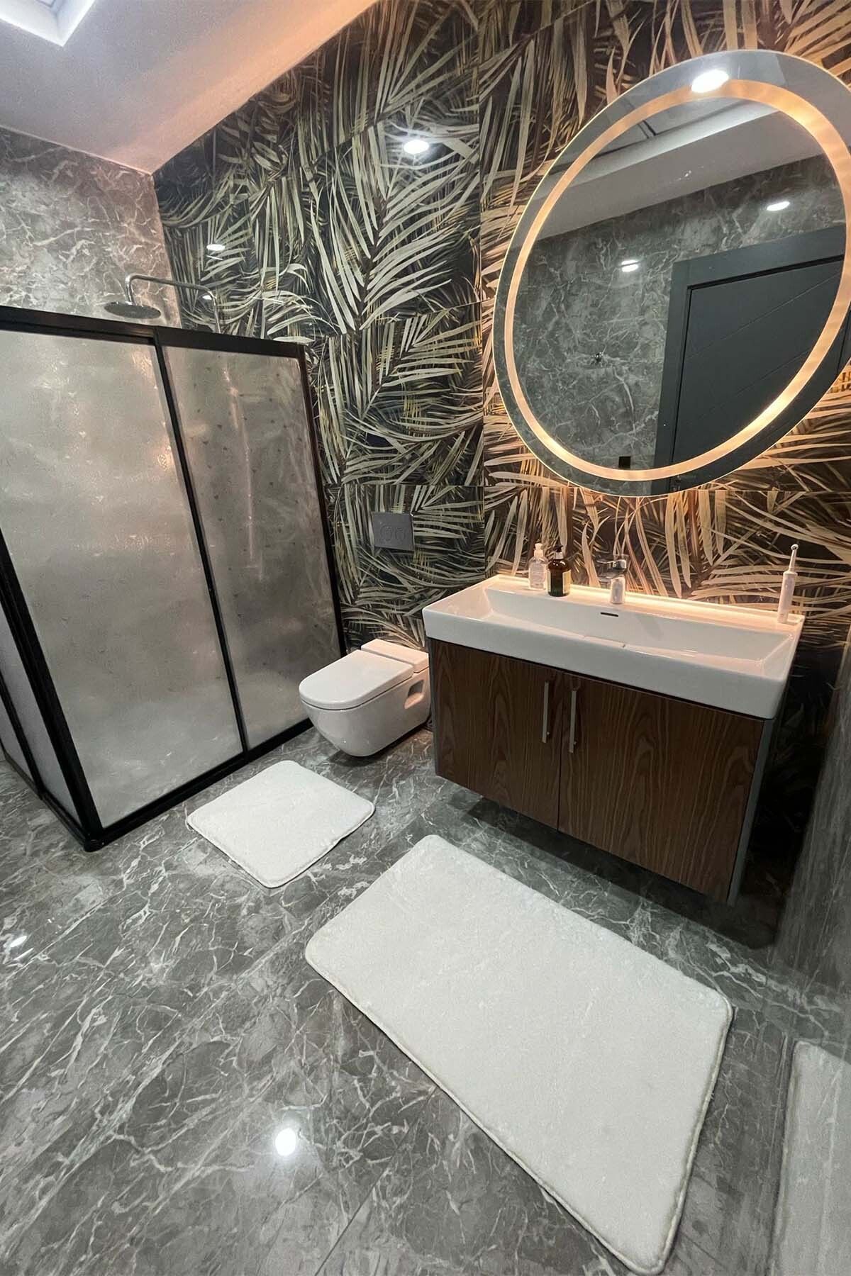 فرش حمام قابل شستشو مخمل کف لیز نمیخورد سفید زیرپایی برند tropikal home کد 1719638233