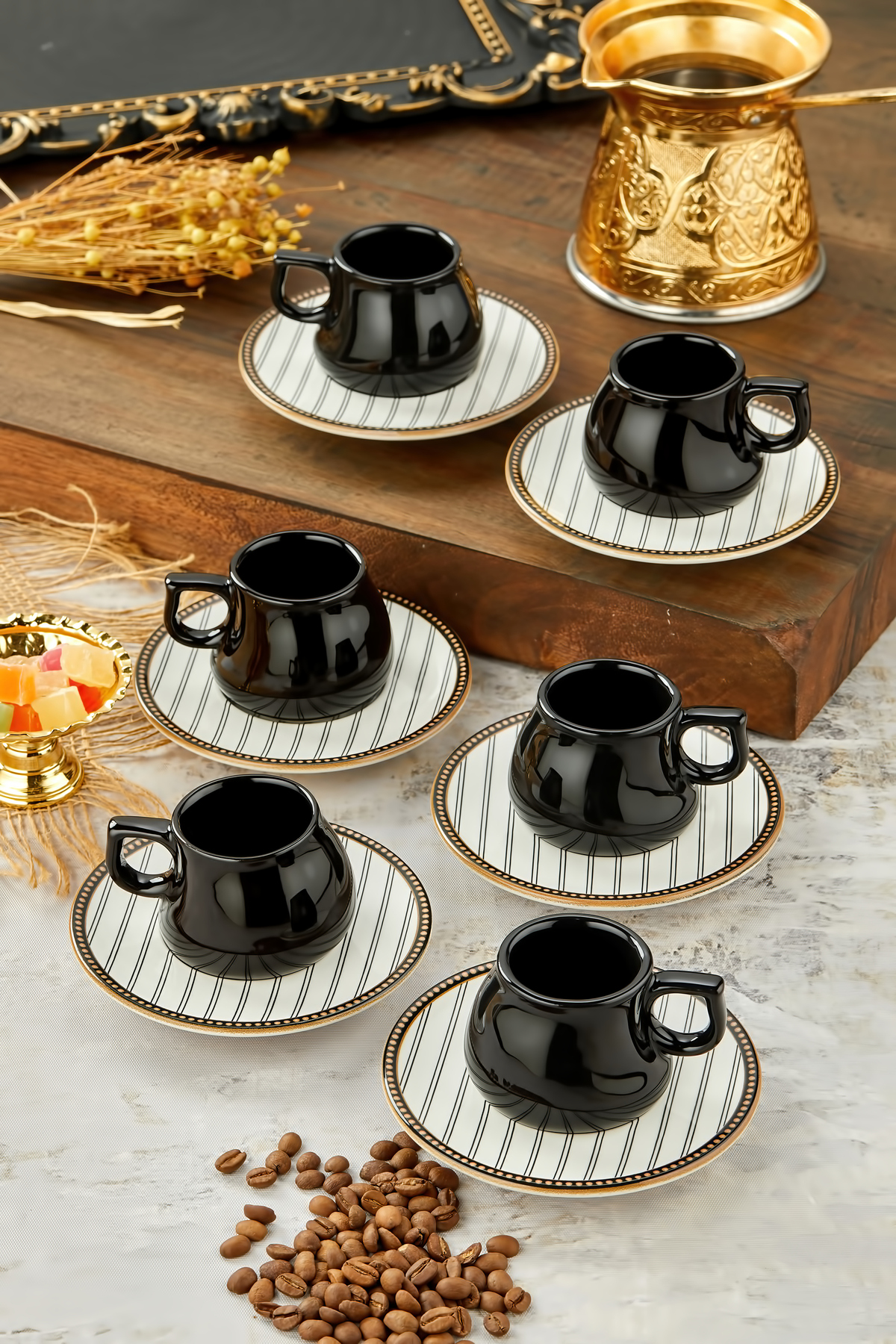 فنجان قهوه ترک سرامیک 6نفره لوکس 12تکه مشکی با کیفیت عالی و رنگ زیبا و طرح شیک و قیمت باورنکردنی ساخت برند Babion را از فروشگاه اینترنتی فیزا خریداری کنید.