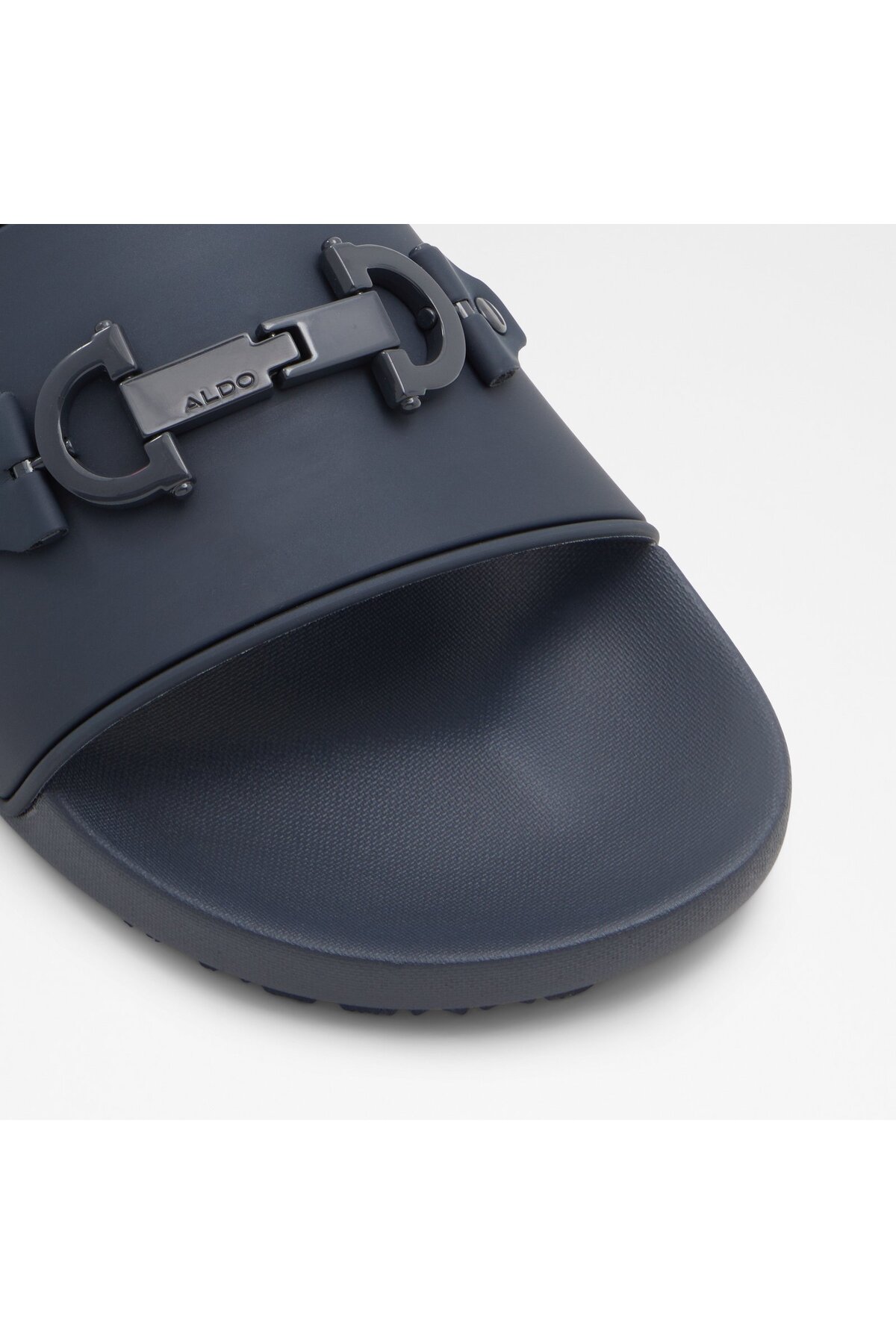 دمپایی مردانه چرمی مصنوعی رنگ سرمهای برند Aldo، ترکیبی از راحتی و زیبایی است که برای استفاده روزمره طراحی شده است.