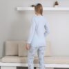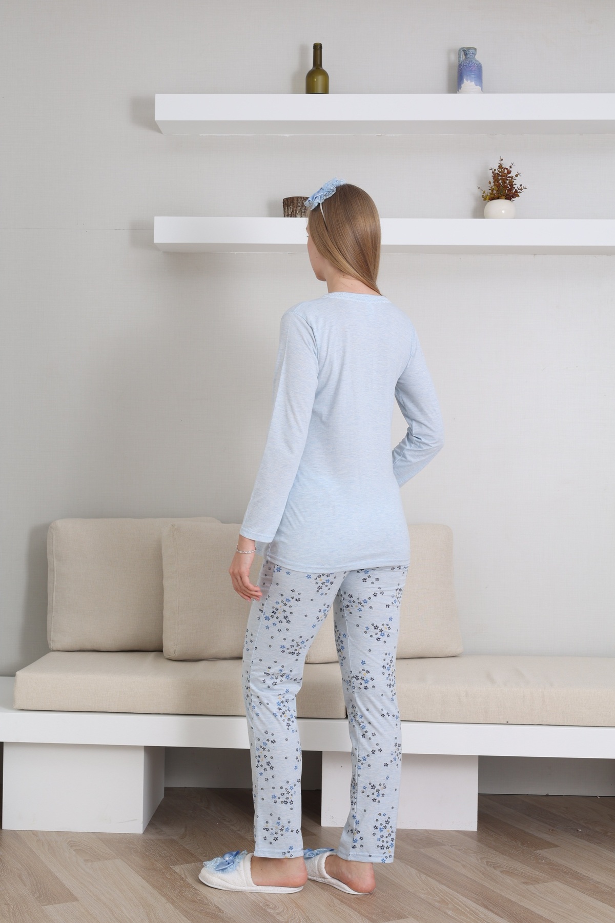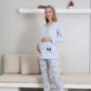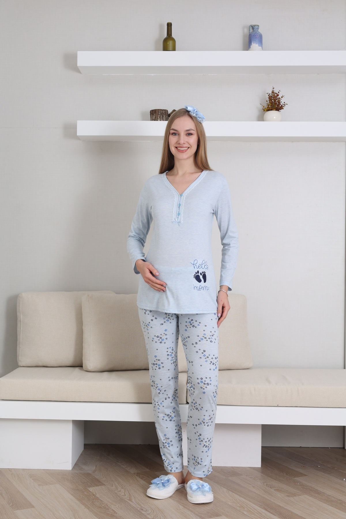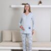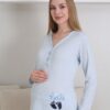 طراحی یقه دکمهای این پیژامه بهگونهای است که نهتنها زیبایی خاصی به آن میبخشد، بلکه به مادران باردار این امکان را میدهد که بهراحتی یقه را باز و بسته کنند. این ویژگی میتواند در مواقعی که به شیردهی نیاز است، بسیار کارآمد باشد و راحتی بیشتری را برای مادر و نوزاد فراهم کند. همچنین، آستینهای بلند این پیژامه، حفاظت مناسبی از بدن در برابر سرما و هوای سرد فراهم میآورد.
