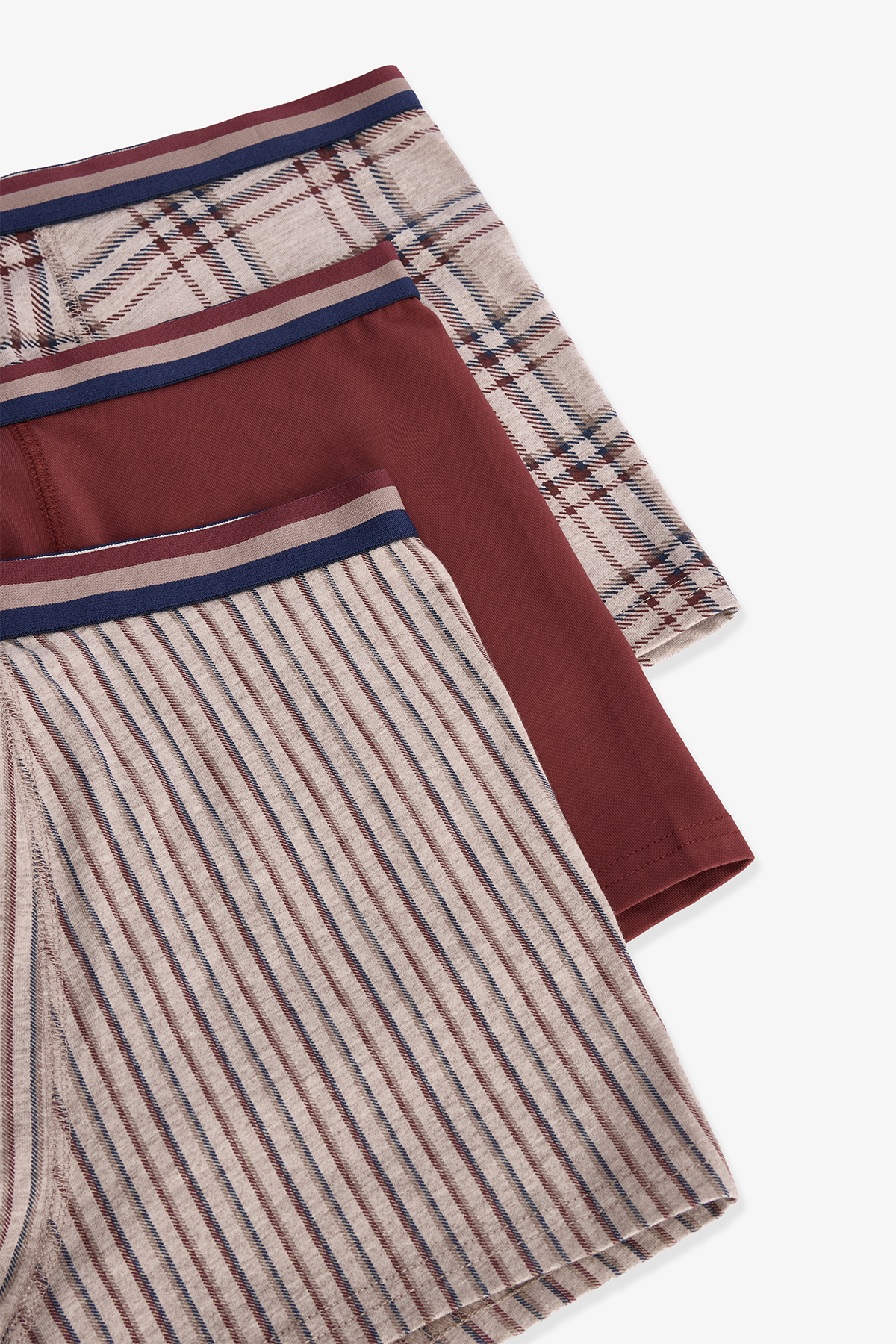 شورت باکس سهتایی مردانه قهوهای چهارخانه، نمونهای عالی از لباس زیر راحت و شیک برای آقایان است. این محصول با طراحی مدرن و جذاب، احساس راحتی و آزادی حرکت را به شما هدیه میدهد. جنس نرم و لطیف این شورتها به گونهای انتخاب شده که به پوست شما آسیبی نرساند و در طول روز احساس خوشایندی را برای شما فراهم کند.