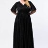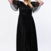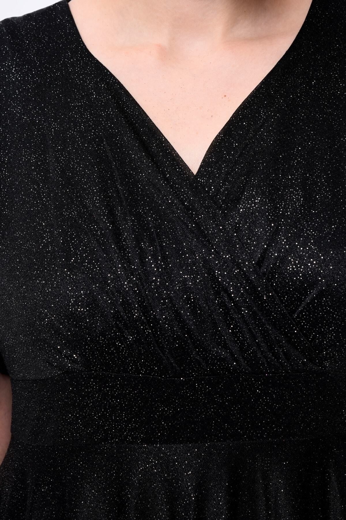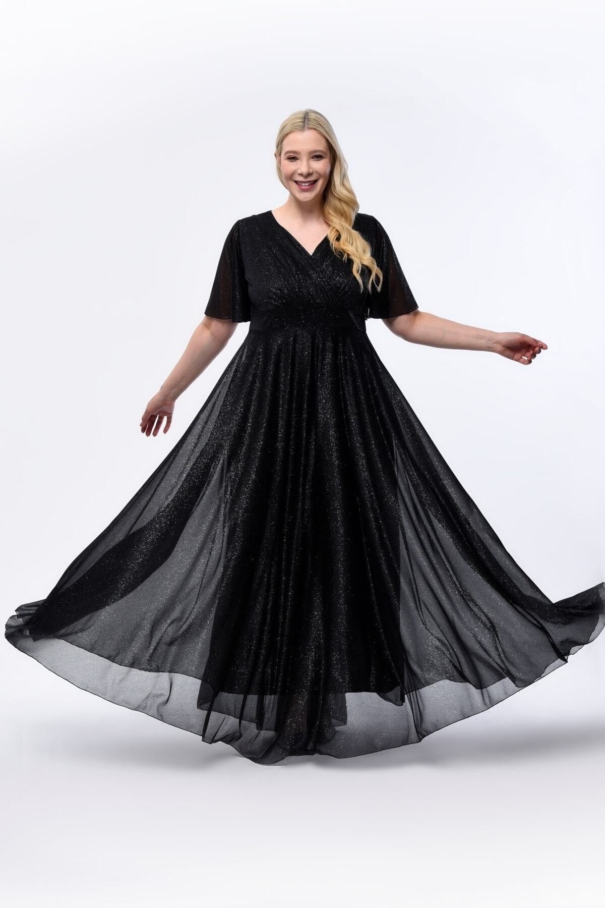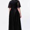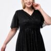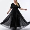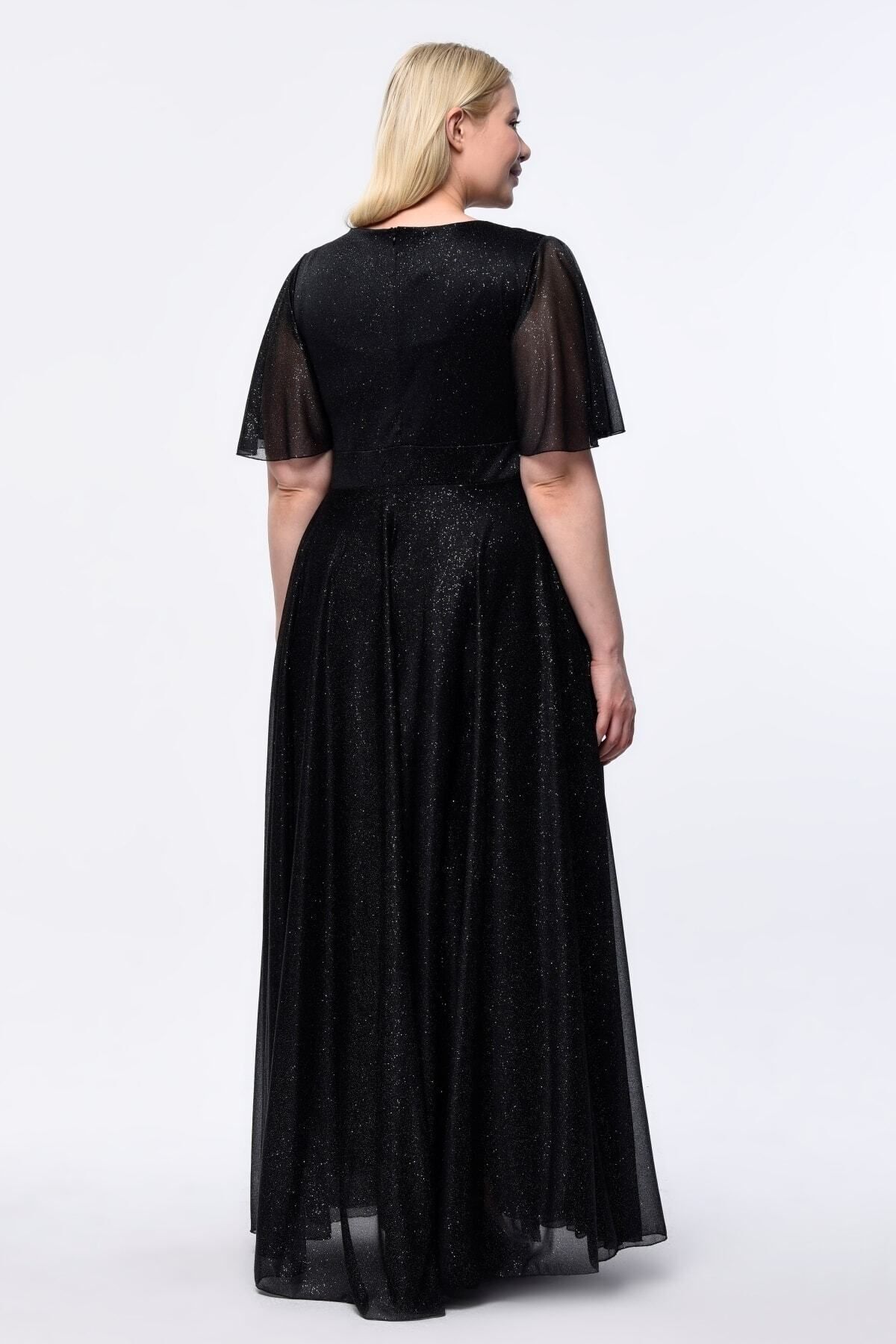 لباس شب مجلسی شیک با یقه کروازی و آستینهای پفی از جنس توری با تم براق، مخصوص سایز بزرگ 3051 برند Genel Markalar
