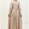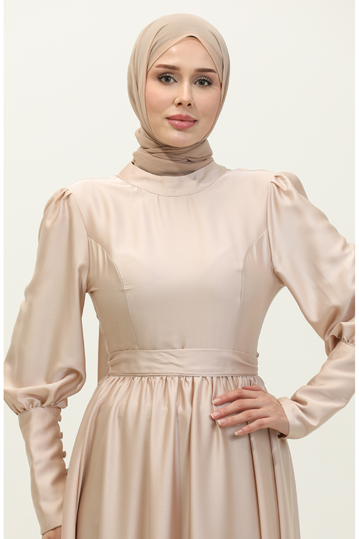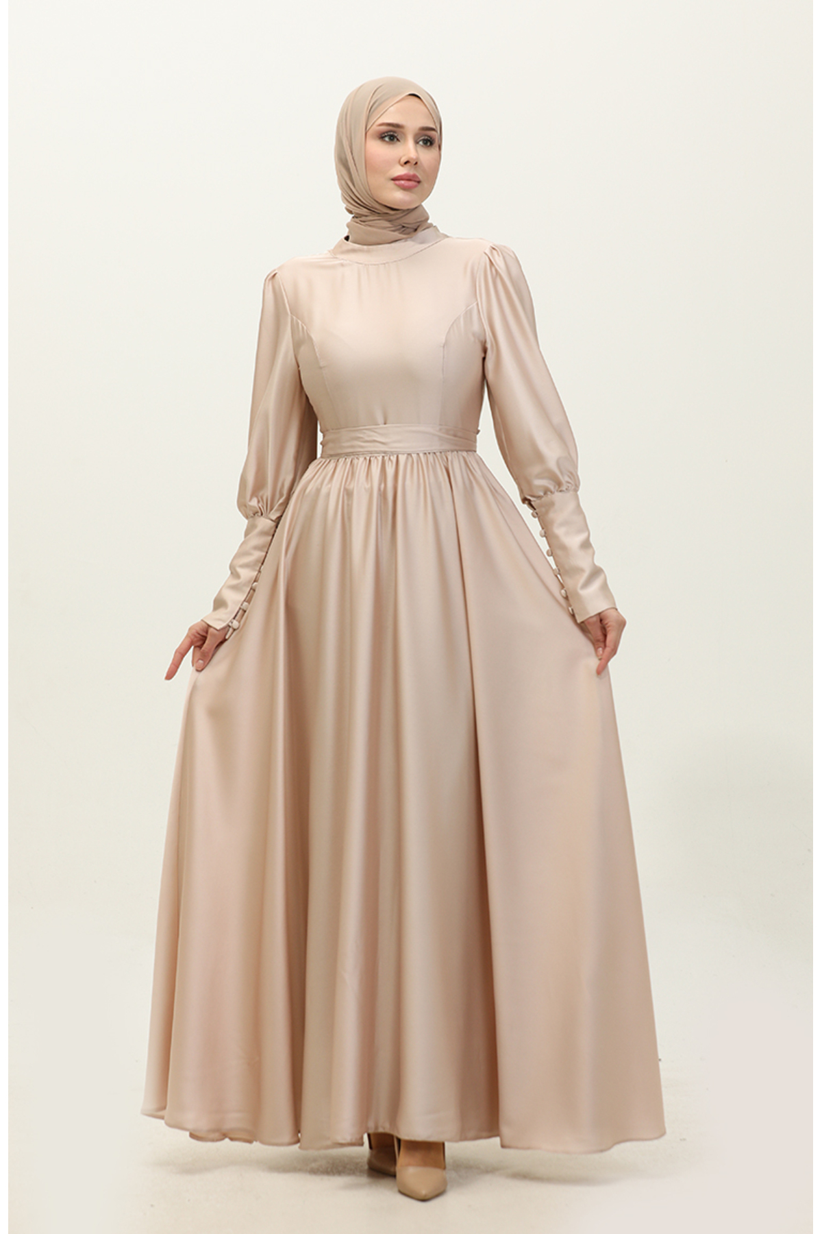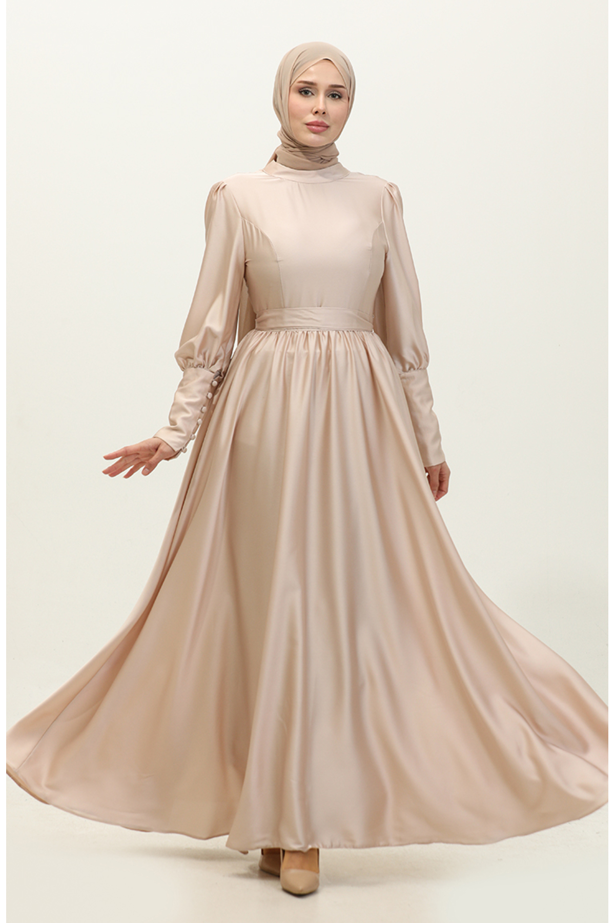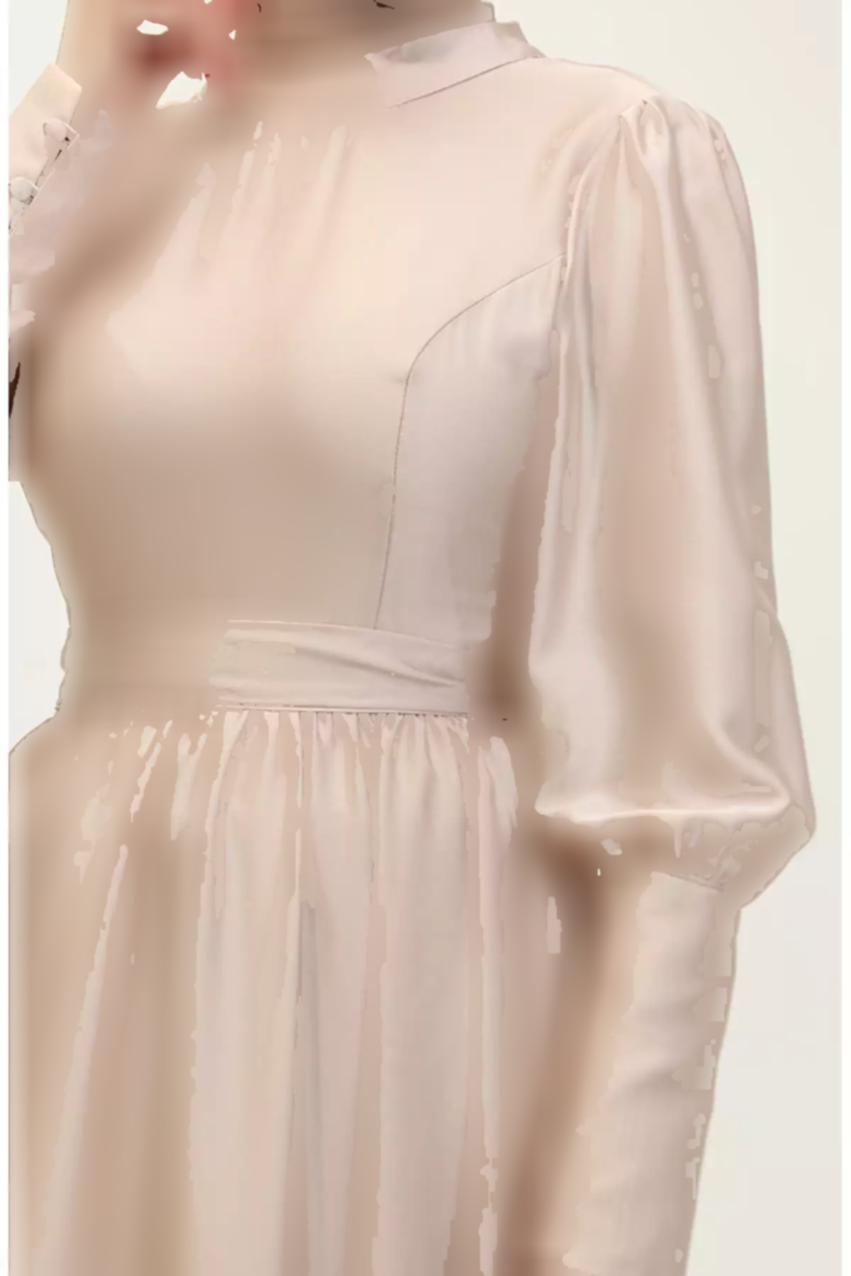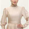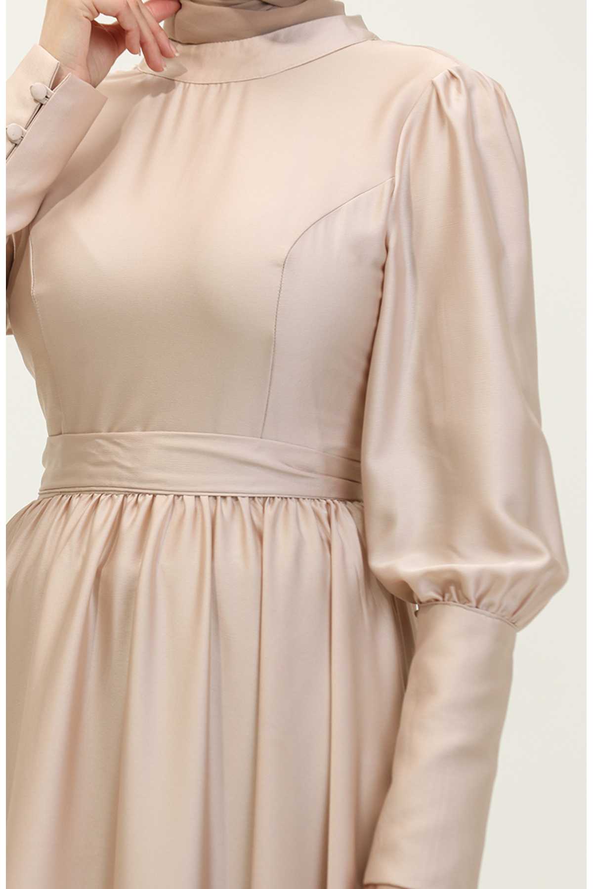 پارچه ساتن به کار رفته در این لباس، نرمی و درخشندگی خاصی دارد که به شما احساس راحتی و لوکسی را میدهد. در کنار این ویژگی، جنس ساتن به خوبی بر روی بدن نشسته و به فرمدهی زیبا کمک میکند. با توجه به این که لباسهای ساتن معمولاً در دماهای مختلف قابل استفاده هستند، این لباس نیز مناسب برای فصول مختلف سال خواهد بود.