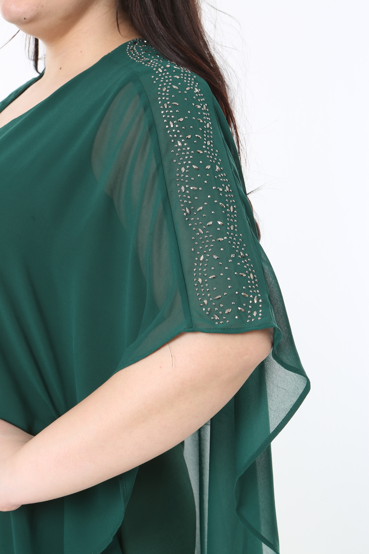 پیراهن شب سبز با تزئینات سنگی و شنل بزرگ در سایز بزرگ زنانه (کد 1742219478) یک انتخاب بینظیر برای زنان اعتماد به نفس و شیکپوش است که به دنبال لباسی منحصر به فرد و چشمنواز برای مهمانیها و مناسبتهای خاص هستند. این پیراهن با طراحی خاص و رنگ زیبا، به آسانی میتواند توجه همه را جلب کند و شما را در مرکز توجه قرار دهد.