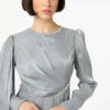 رنگ خاکستری این لباس، جلوهای کلاسیک و شیک را به ارمغان میآورد و به راحتی با انواع اکسسوریها و رنگهای دیگر ست میشود. این قابلیت، دلیل دیگری است که لباس را به یکی از محبوبترین انتخابها برای مناسبتهای خاص تبدیل کرده است. از جواهرات طلایی و نقرهای گرفته تا کیف و کفش، این لباس به خوبی با هر استایلی همخوانی دارد.