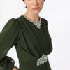 این لباس مجلسی به راحتی قابل ست شدن با اکسسوریها و کفشهای مختلف است. میتوانید از جواهرات با سبکهای مختلف، کیفهای دستی و کفشهای مجلسی برای تکمیل استایل خود استفاده کنید. ترکیب این لباس با اکسسوریهای مدرن و کلاسیک میتواند به شما ظاهری منحصر به فرد و جذاب بدهد که در خاطرهها باقی بماند.