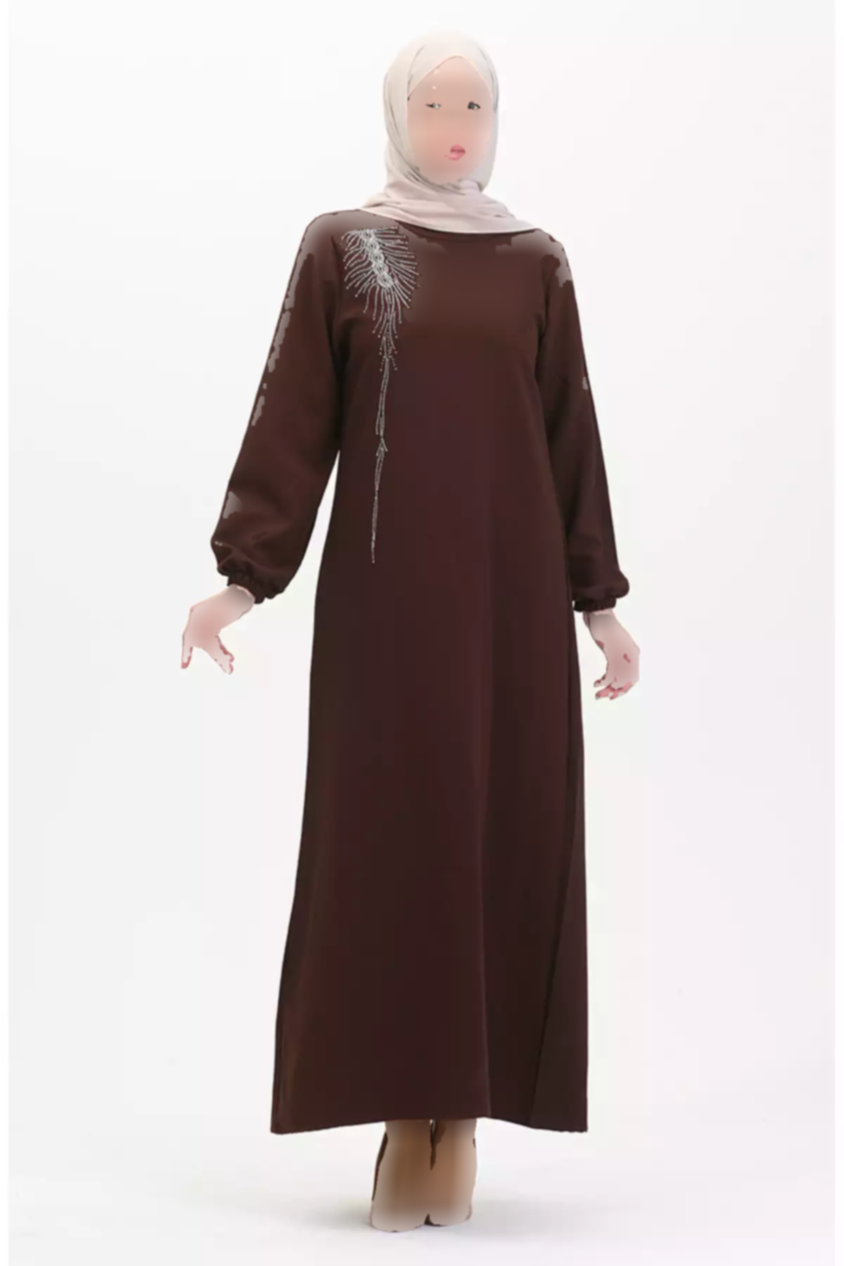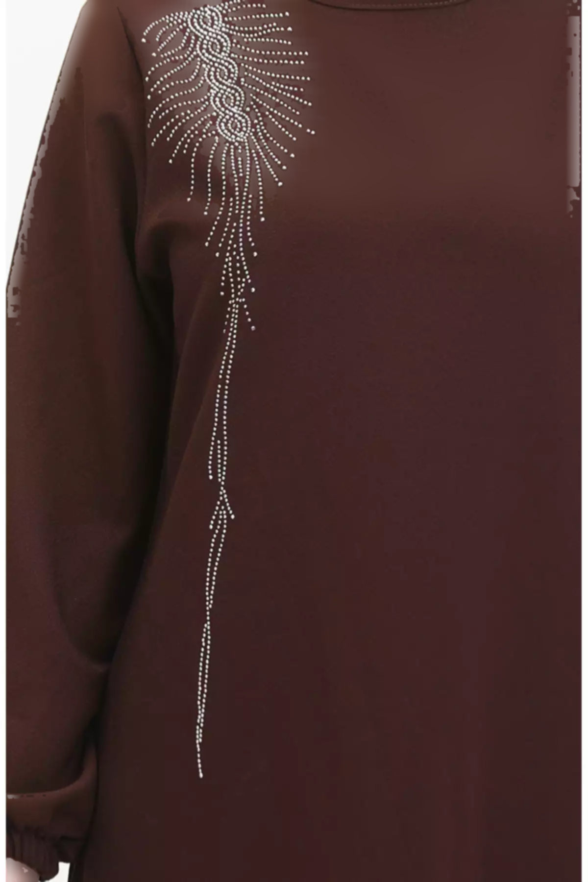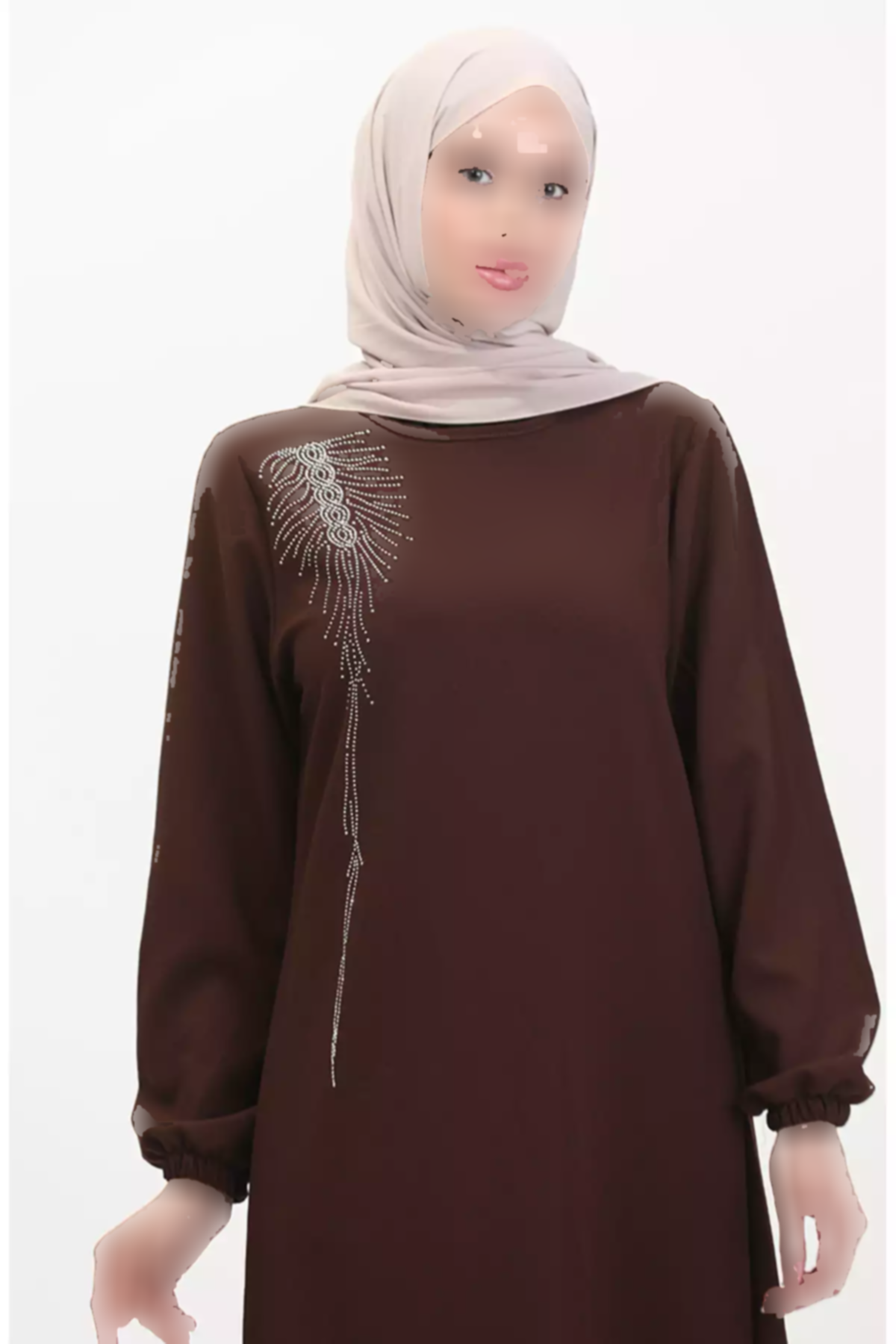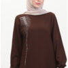 **توضیحات محصول: لباس مهمانی کرب شیری سنگدار ۰۴۸۰-۰۵ قهوهای**