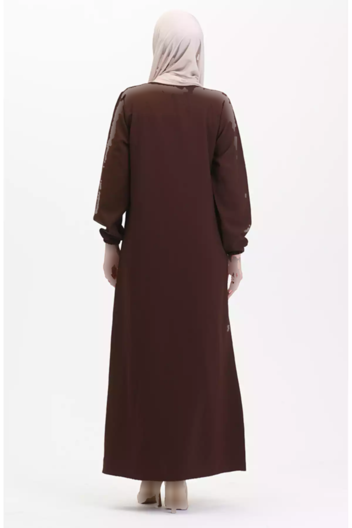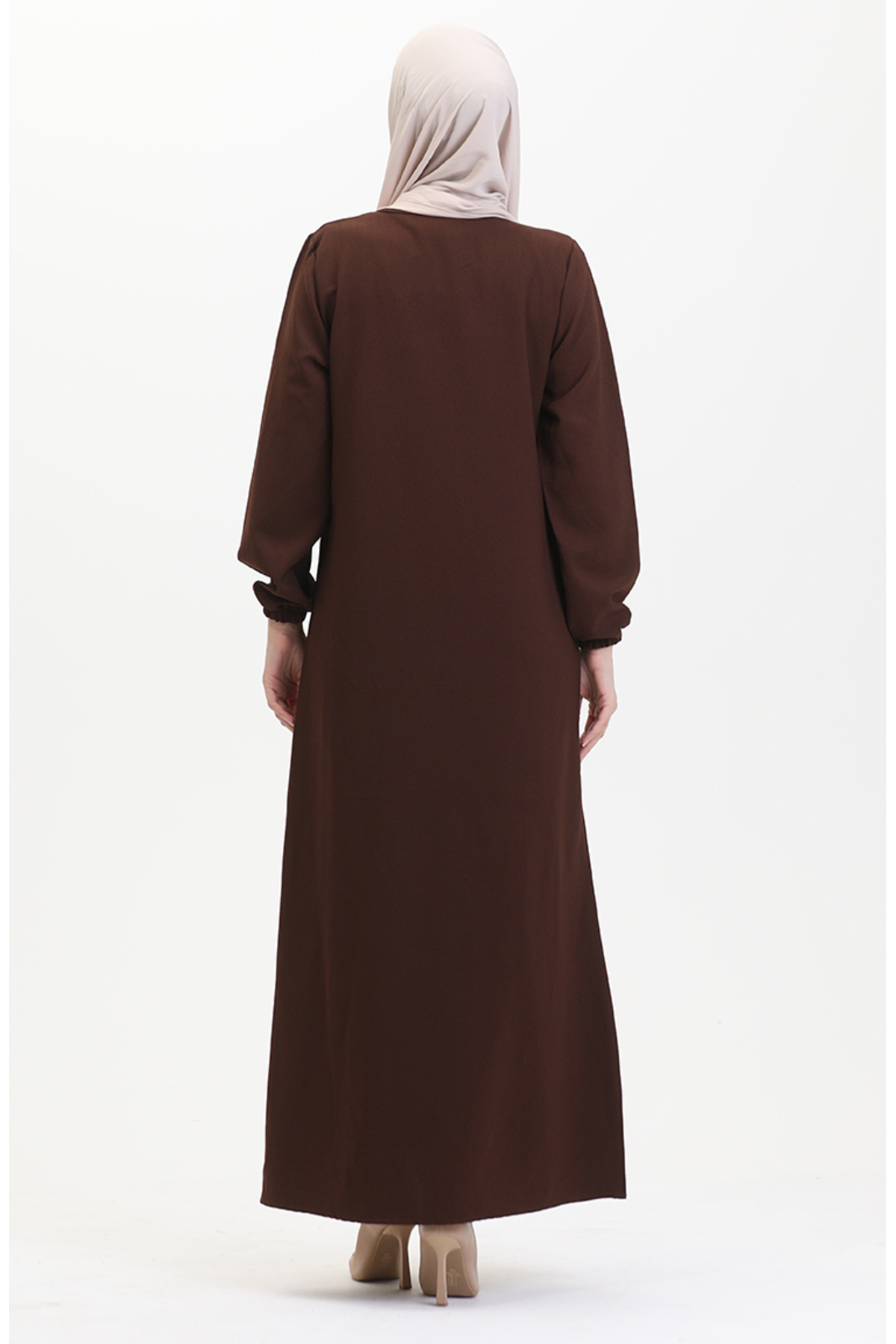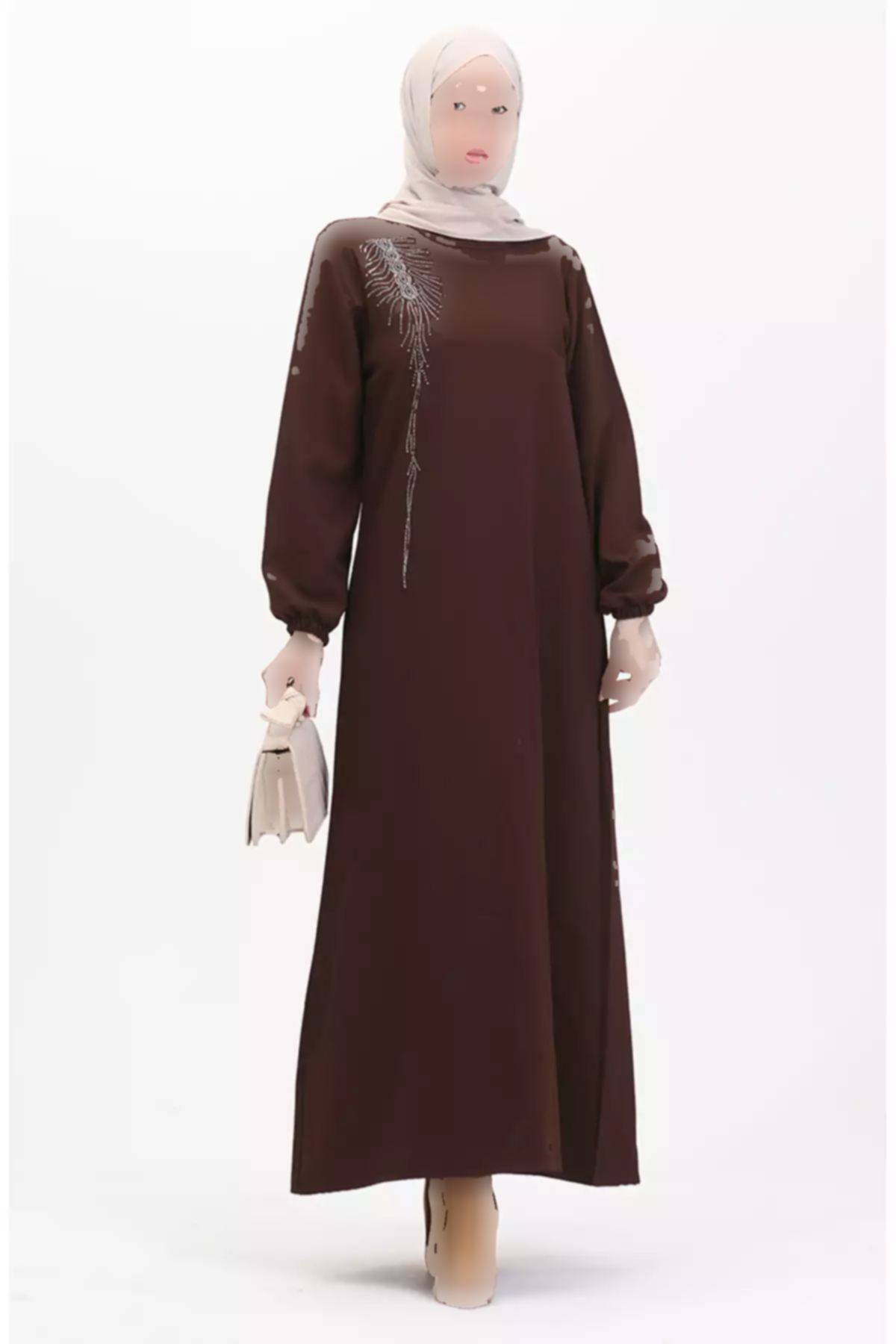 **توضیحات محصول: لباس مهمانی کرب شیری سنگدار ۰۴۸۰-۰۵ قهوهای**