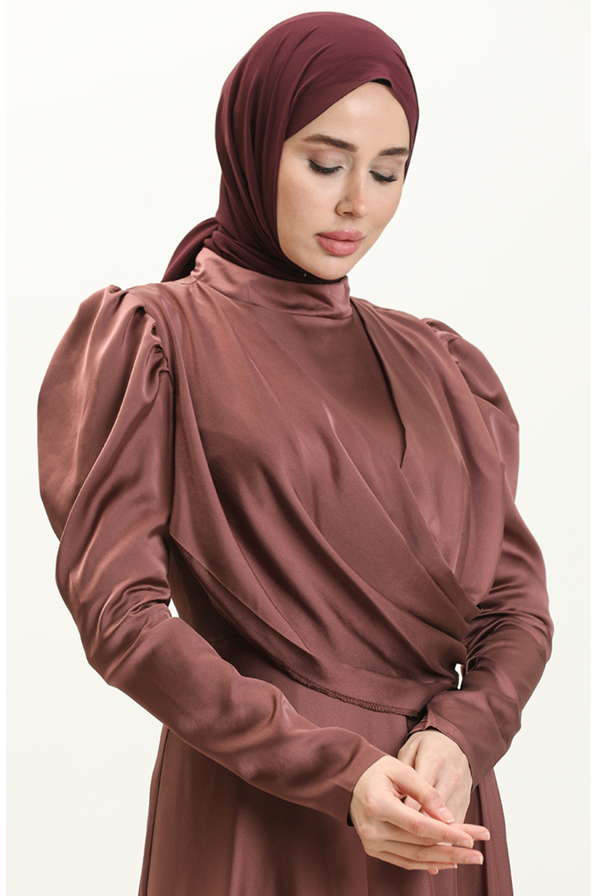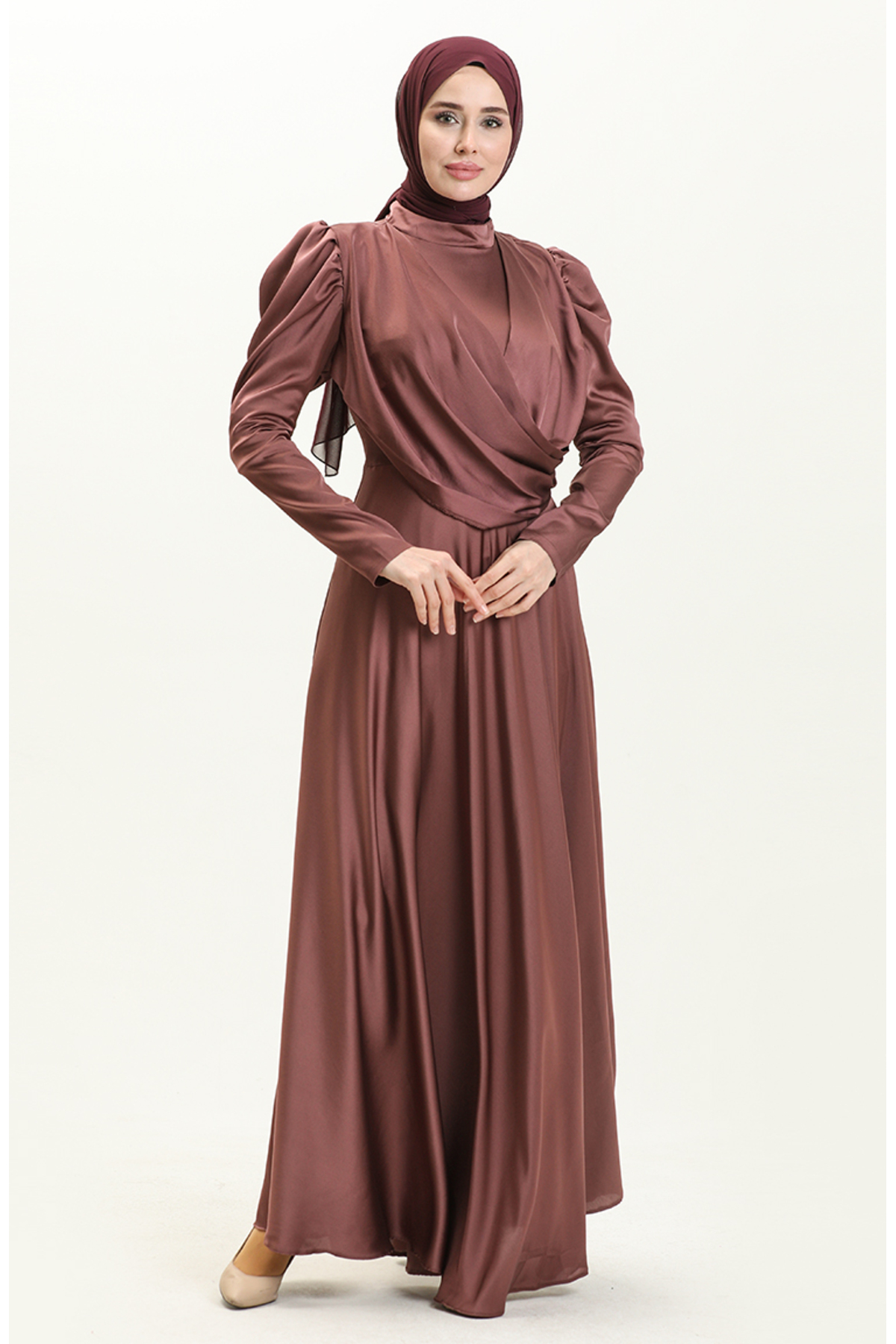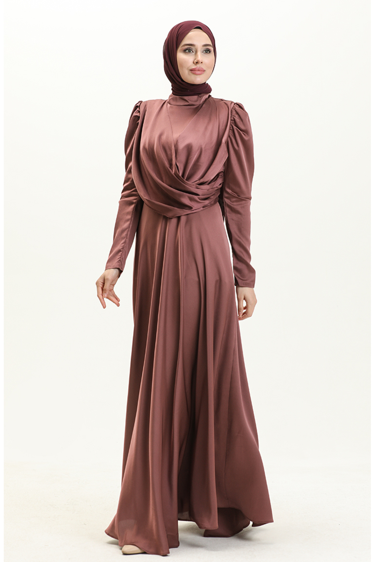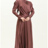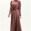 این پیراهن از جنس ابریشمی ساتن ساخته شده است که دارای نرم و لطیف بودن خاصی است. این خاصیت باعث میشود در هنگام پوشیدن آن، احساس راحتی فوقالعادهای داشته باشید. علاوه بر این، پارچه ابریشمی ساتن به دلیل درخشش خاص خود، در نور زیبایی منحصر به فردی را به شما میبخشد و شما را در مرکز توجه قرار میدهد. چینهای جلو این پیراهن به زیبایی طراحی شده و به شما ظاهری مجلل و خاص میدهد.