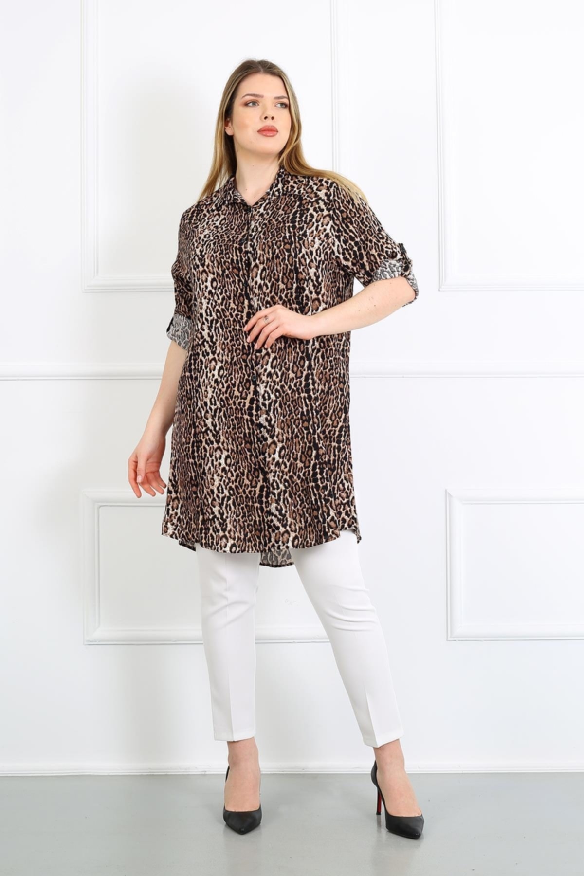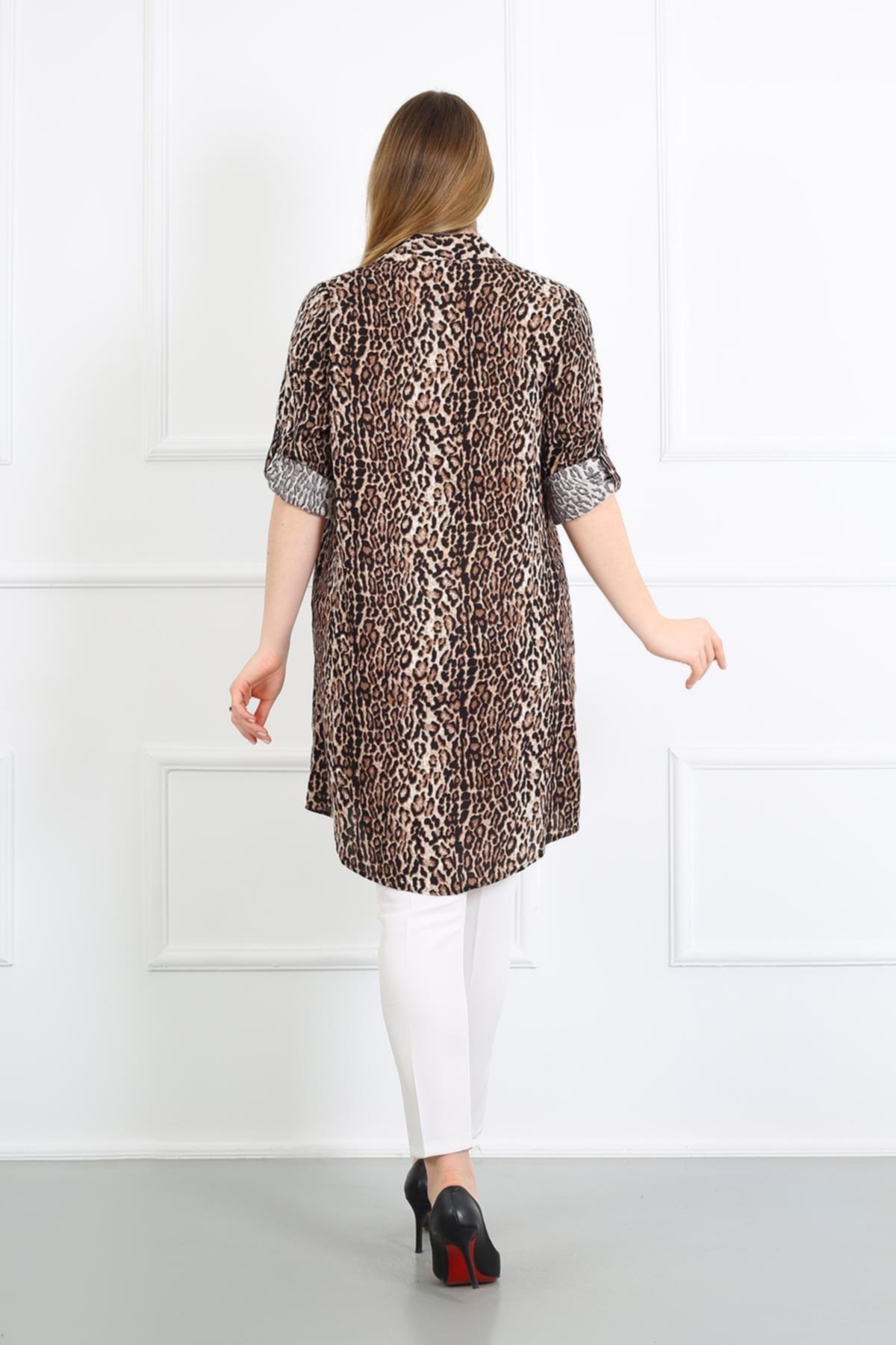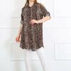 پارچه لئوپار به کار رفته در این تنیک، جذابیت خاصی به آن میبخشد و به راحتی میتواند با سایر لباسها ست شود. الگو و رنگهای این پارچه به گونهای طراحی شده که نه تنها زیبایی ظاهری آن را افزایش میدهد، بلکه حس شیکپوشی را نیز به کاربر منتقل میکند. برای خانمهایی که به دنبال متفاوت بودن در انتخاب پوشاک خود هستند، این تنیک یک گزینهی بینظیر به حساب میآید.