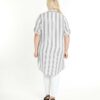 تنظیمات الگوهای خطی سفید بر روی این تُنیک به زیبایی به طراحی آن جلوهای مدرن و جذاب بخشیده است. این خطوط به طور متوازن و هماهنگ در سراسر پارچه توزیع شدهاند، که میتواند ظاهری کشیده و خوشفرم برای کاربر ایجاد کند. همچنین، انتخاب رنگ سفید سبب میشود تا این تُنیک به راحتی با دیگر رنگها و لباسها ست شده و به عنوان یک لباس پایه در کمد لباس شما عمل کند.