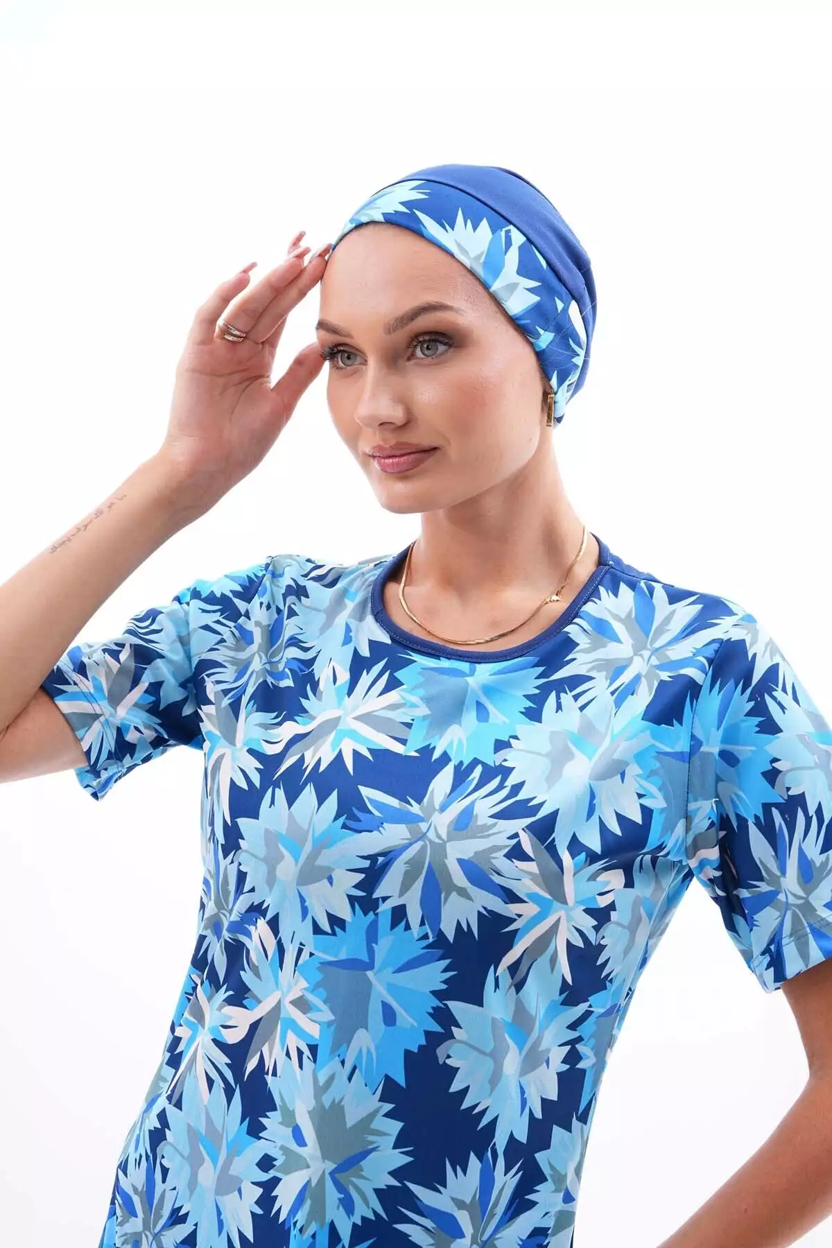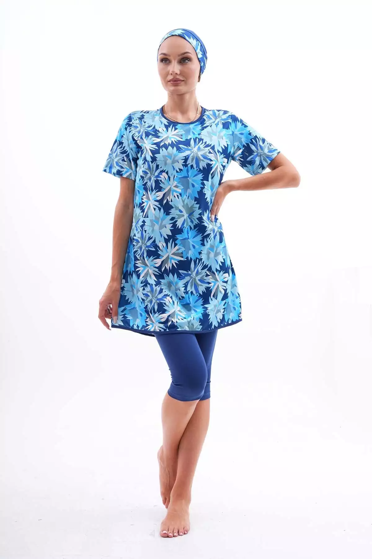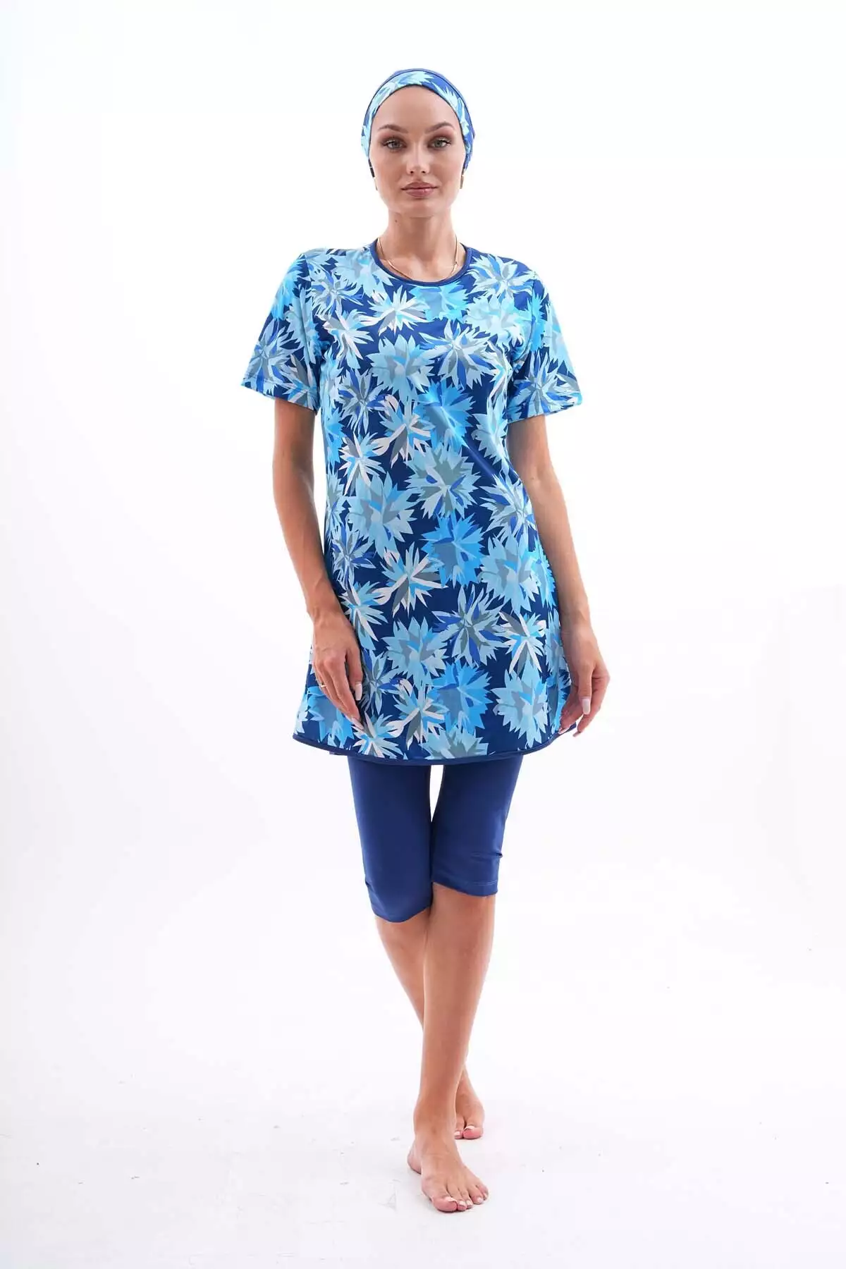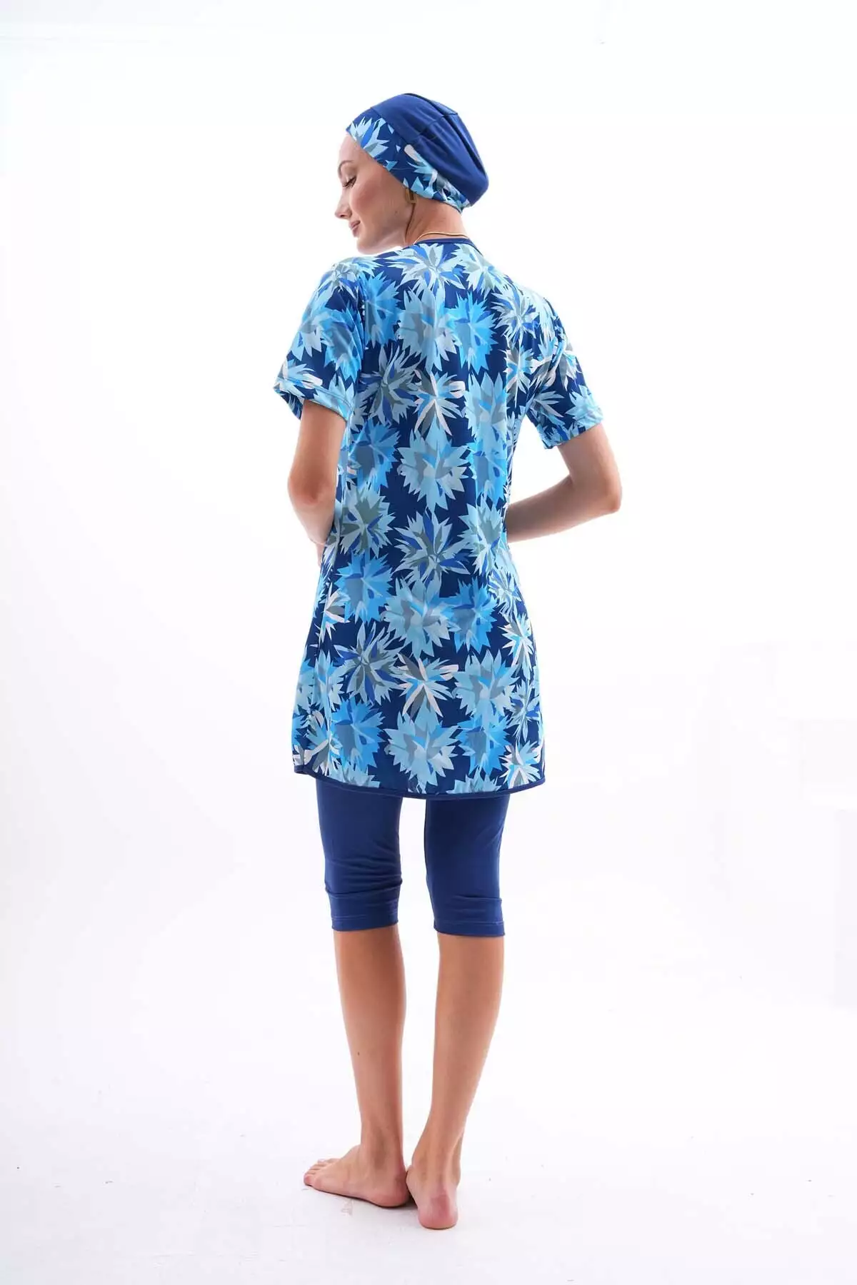 ماهی کوتاه آستین زنانه با طراحی سرمهای و الاستیک برای لباس شنا حجاب برند Genel Markalar
