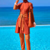 در نهایت، اگر به دنبال لباسی هستید که هم زیبا باشد و هم عملکردی، ماهی لباس مایو پوشیده نارنجی با کمربند قابل تنظیم گزینهای بسیار مناسب برای شماست. با این لباس مایو، شما نه تنها تجربهای لذتبخش از شنا را خواهید داشت، بلکه همیشه احساس شیکی و اعتماد به نفس خواهید کرد. این محصول با کد M2523-2 (کد 1753525867) در دسترس شماست تا به مجموعه لوازم تابستانی شما افزوده شود.