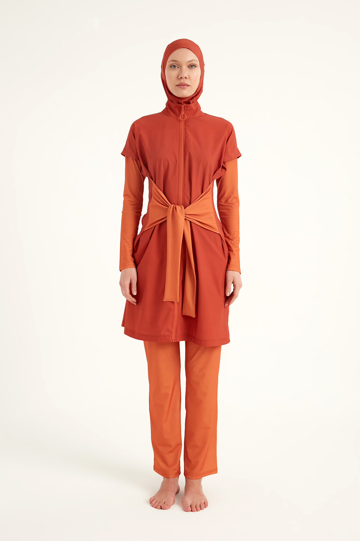 ماهی لباس مایو پوشیده نارنجی همچنین از نظر حمایت و پوشش، گزینهای ایدهآل برای افرادی است که به دنبال حفاظت بیشتر از پوست خود هستند. این نوع لباس مایو به طور کامل بدن را پوشش میدهد و از تابش مستقیم UV آفتاب به پوست جلوگیری میکند. در نتیجه، شما میتوانید با خیال راحت به تفریحات آبی بپردازید بدون اینکه نگران آسیبهای ناشی از آفتاب باشید.