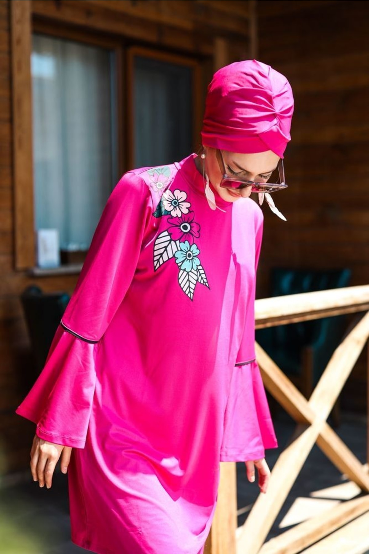مایو اسلامی پوشیده کامل گلدار طرحدار سرخابی با کیفیت عالی و رنگ زیبا و طرح شیک و قیمت باورنکردنی ساخت برند Marina را از فروشگاه اینترنتی فیزا خریداری کنید.