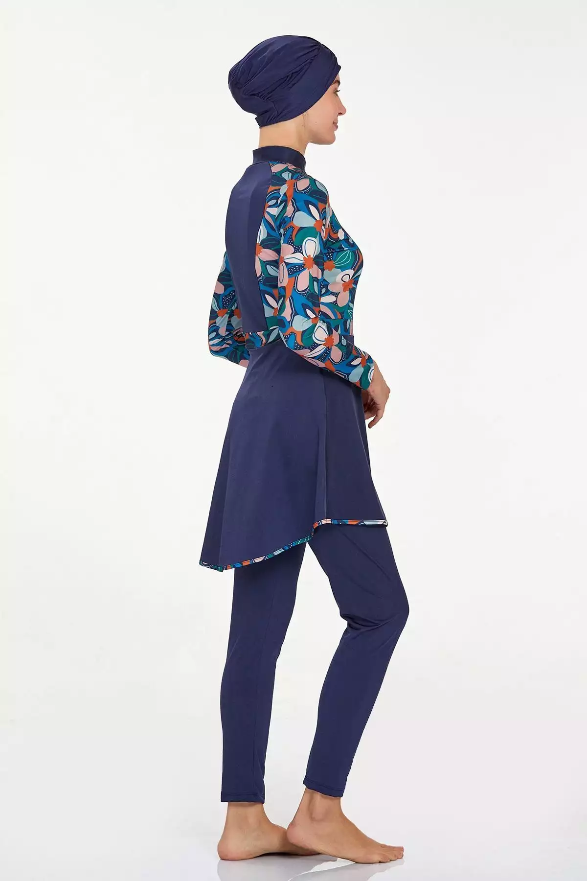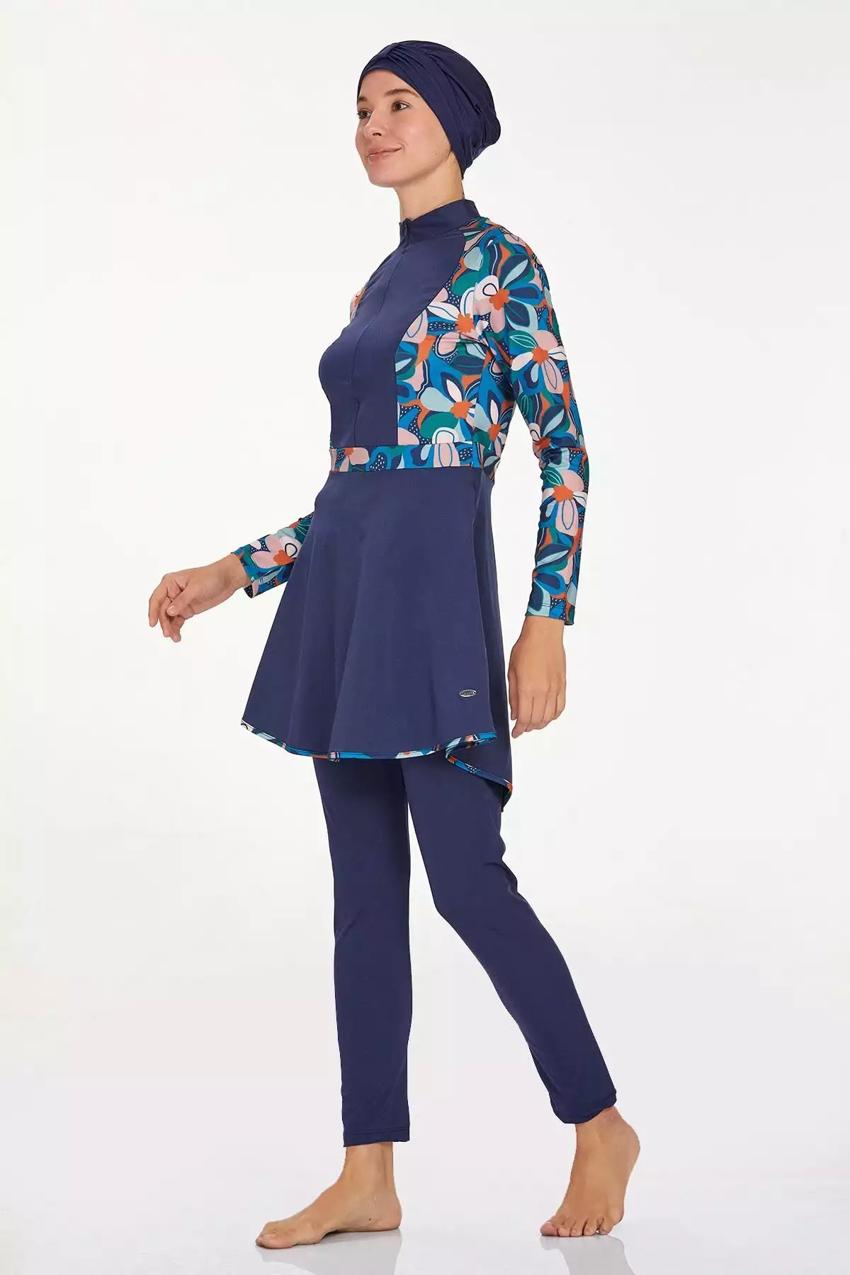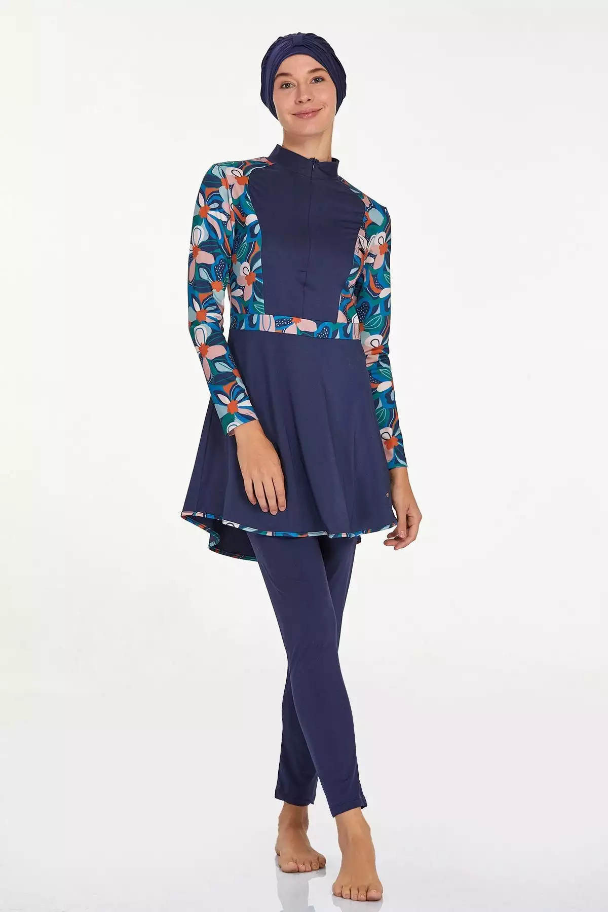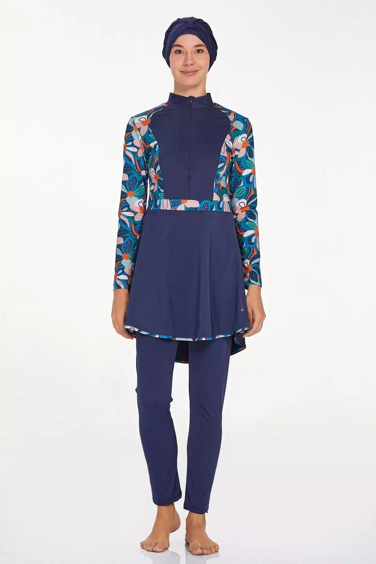 مایو پوشیدنی کامل با کش لی Innova 4529 رنگ سرمهای تیره برند Remsa Mayo