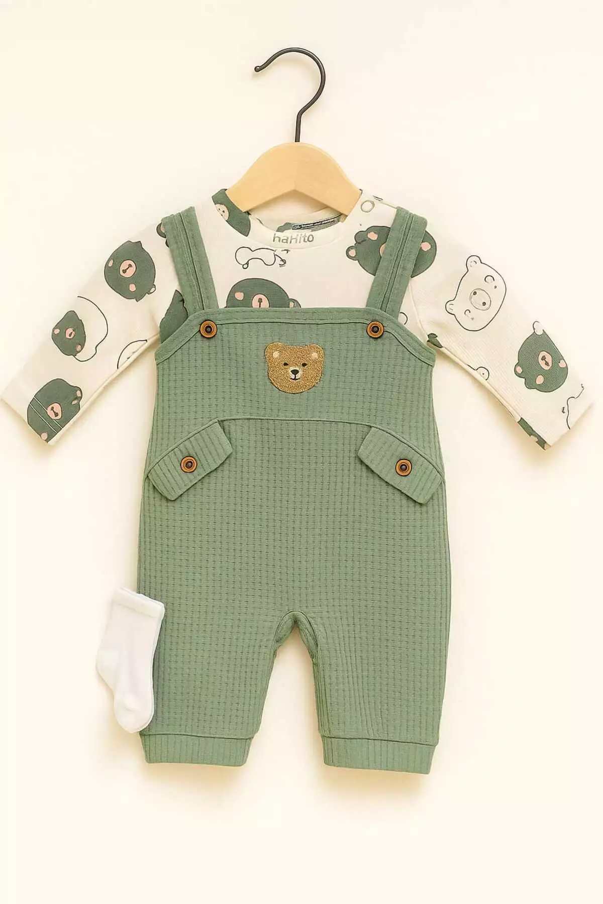 مجموعه سهتکه تیشرت، شلوار و جوراب بچهگانه با طرح خرس و گلدوزی خرس از پارچه پنبهای مناسب برای استفاده مشترک برند NAFİTO