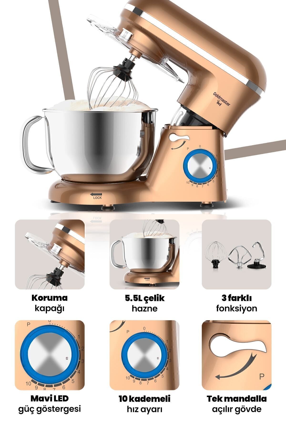 مخلوط کن ورز دادن سرآشپز آشپزخانه 10 سطح 5.5لیتر طلایی با کیفیت عالی و رنگ زیبا و طرح شیک و قیمت باورنکردنی ساخت برند GoldMaster را از فروشگاه اینترنتی فیزا خریداری کنید.
