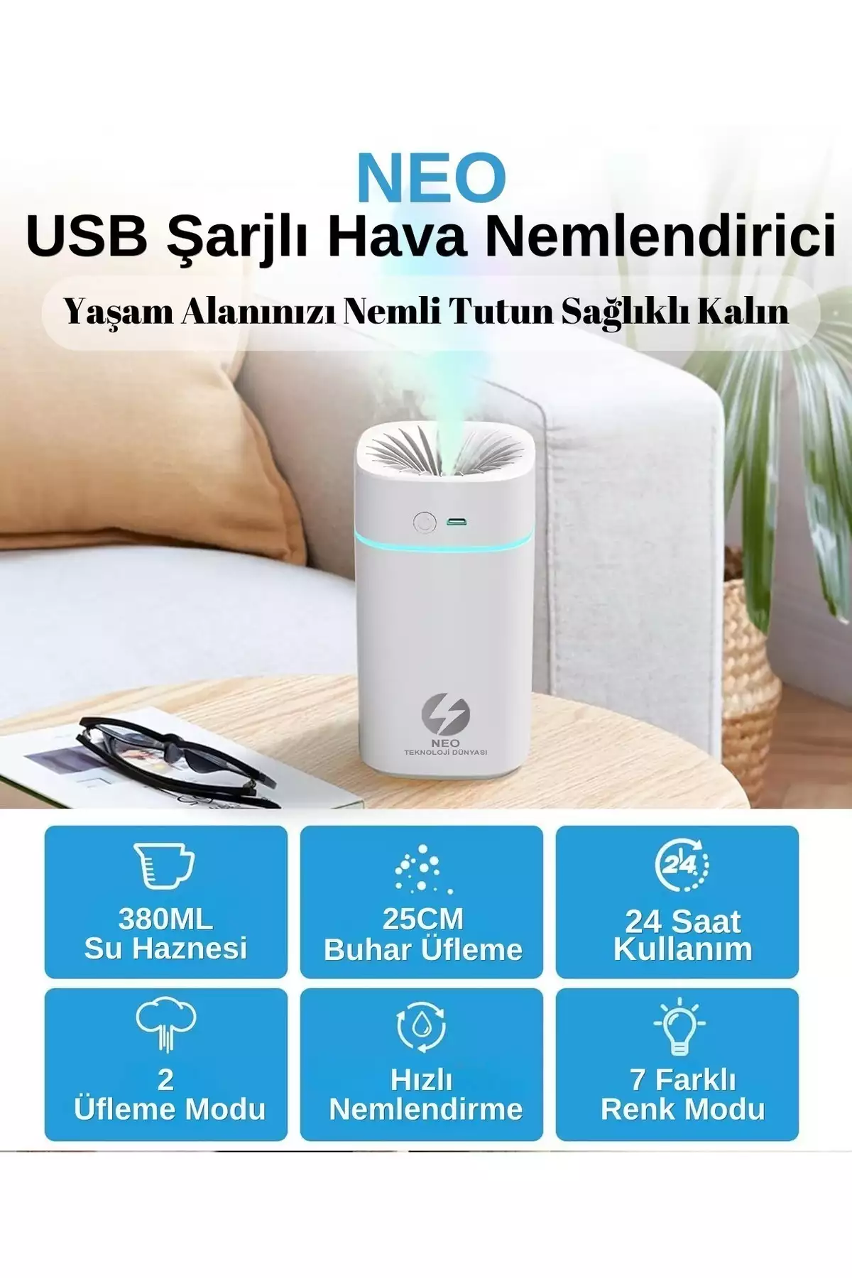 مرطوبکننده هوای شارژی ۳۸۰ میلیلیتر | بخاردستگاه شارژی | چراغ شب | حالت رنگ RGB برند Convoy
