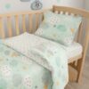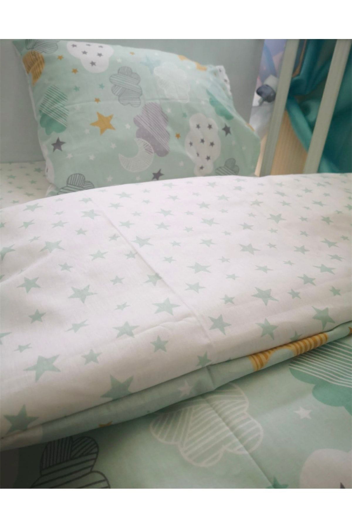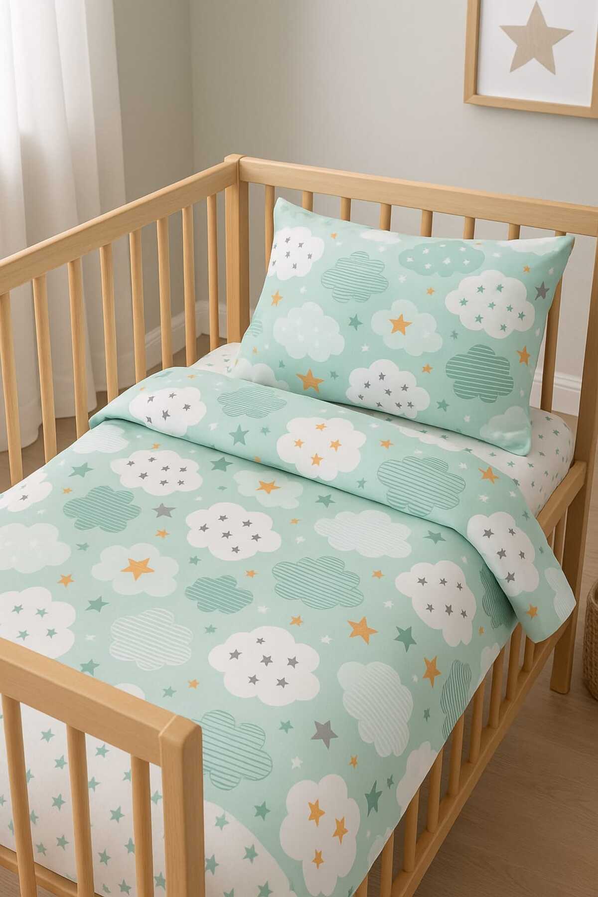 رنگ سبز ملایم و طراحیهای زیبای موجود بر روی این ست، به فضای اتاق خواب انرژی و زندگی میبخشد. این رنگ باعث آرامش و کاهش استرس در کودکان میشود و میتواند به بهبود کیفیت خواب آنها کمک کند. علاوه بر این، طرح ماه و ستاره یادآور آسمان شب است و میتواند کودکان را به سفرهای خیالی در عالم خواب ببرد.